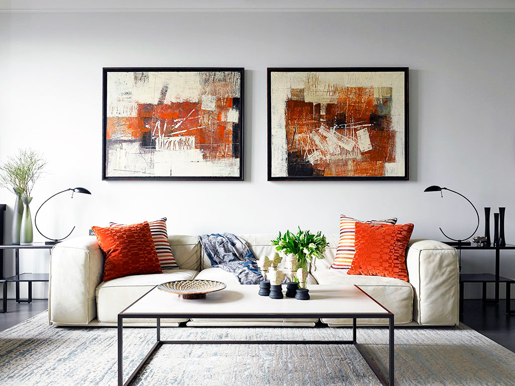 Планировка, мебель, техника должна быть практичной и удобной для повседневной жизни. Картина же должна находить отклик в душе владельца. Достаточно сменить несколько полотен, чтобы задать помещению новое настроение. Декорируя интерьер, обратите внимание на размер площади. В небольших апартаментах лучше не использовать крупные картины до пола, так как они визуально уменьшают пространство. Придать «воздух» можно подвесными настенными полотнами с лаконичным изображением.