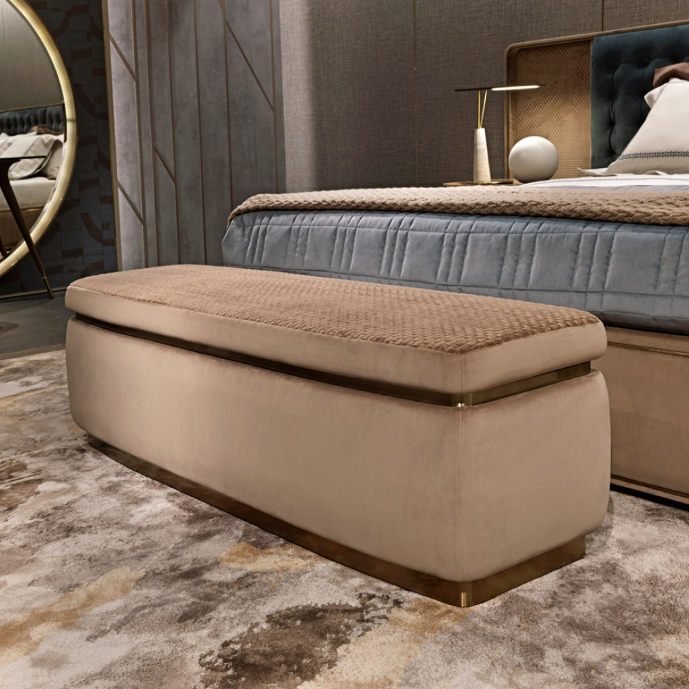 Обивка из натуральной кожи А+ обеспечивает не только невероятную прочность, но и утонченность, даря вашему пространству атмосферу роскоши. Вы также можете выбрать банкетку с обивкой из экокожи на основе микрофибры или ткани, что делает этот продукт универсальным и подходящим для различных стилей оформления.