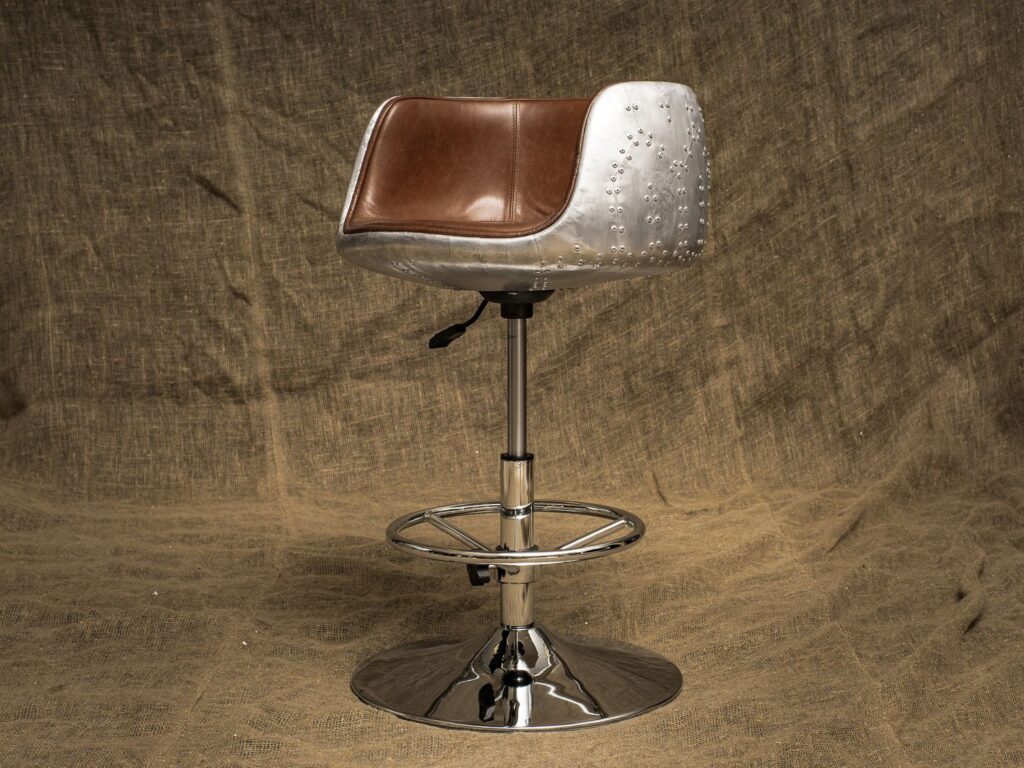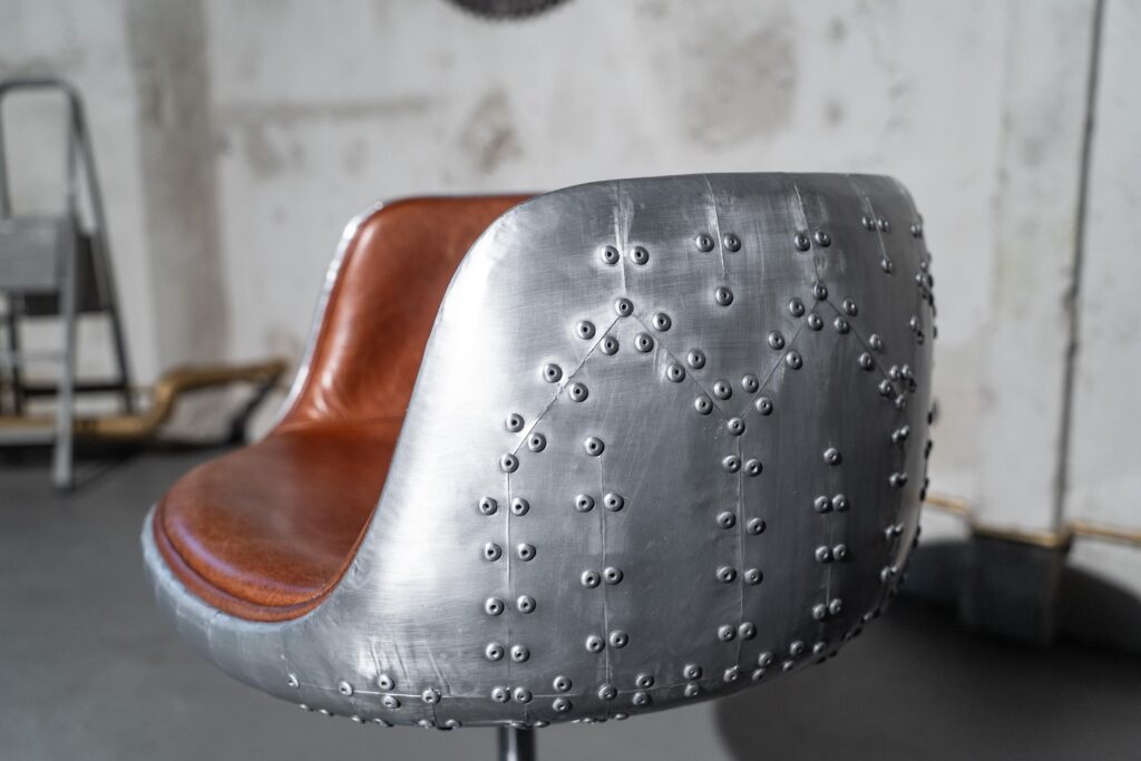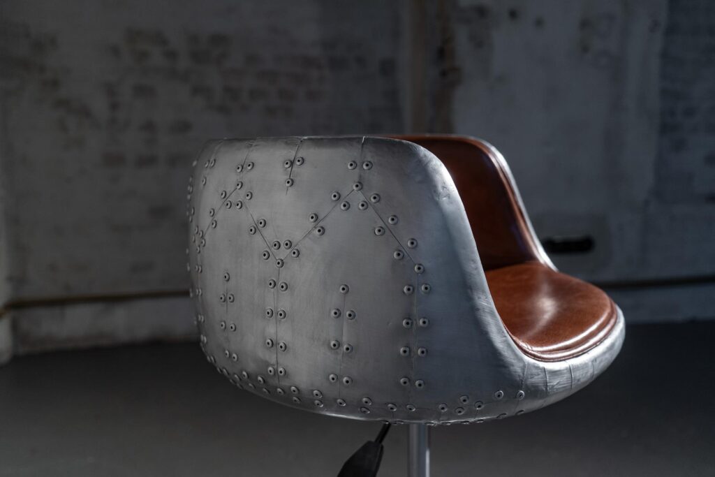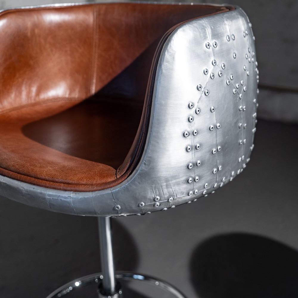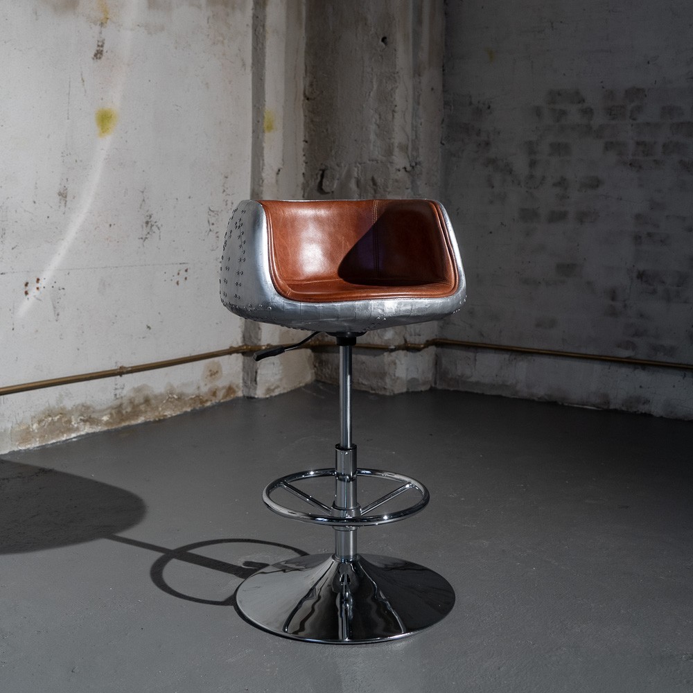 С прочным металлическим каркасом и устойчивыми ножками из нержавеющей стали, этот стул гарантирует максимальную стабильность и долговечность. Уникальная отделка из алюминия придаёт ему современный, винтажный вид, который замечательно впишется в любой loft-стиль.