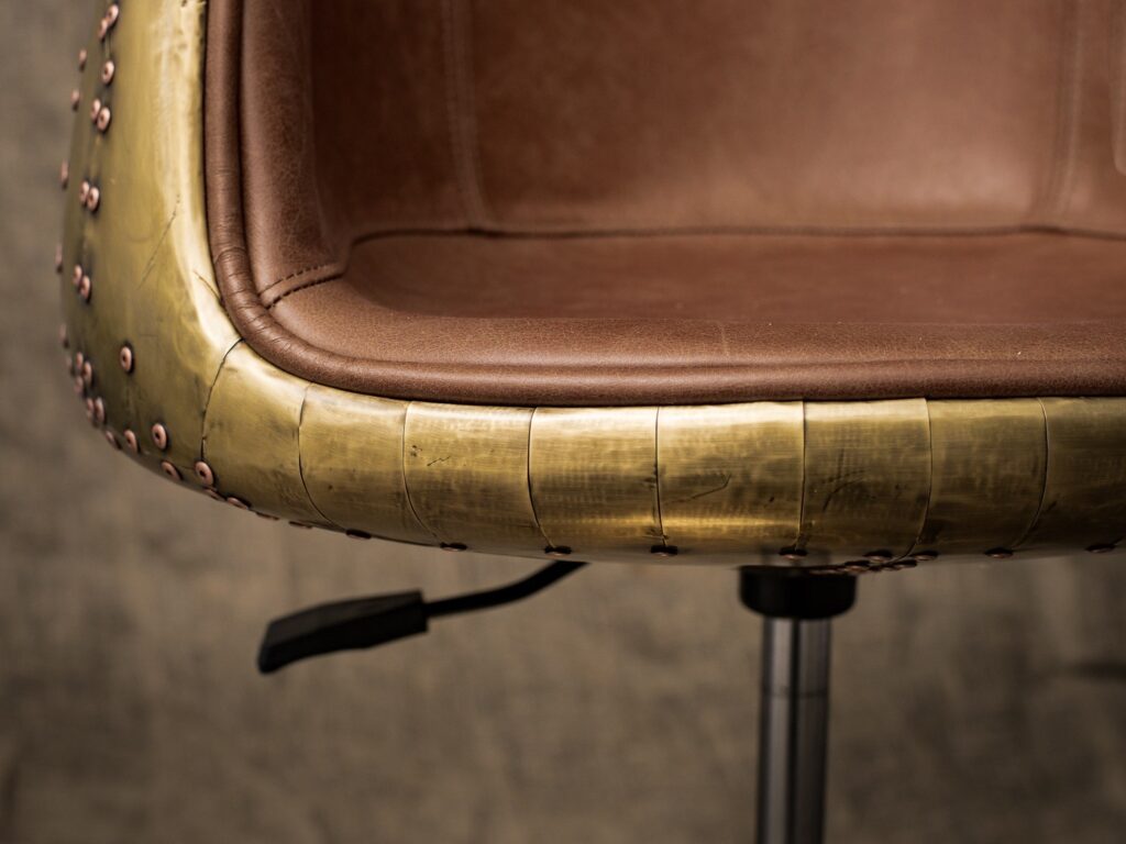С его металлическим каркасом и нержавеющими стальными ножками, этот барный стул отличается невероятной прочностью и долговечностью. Элегантная отделка из латуни придаст вашему пространству нотки роскоши и vintage-стиля, а мягкая обивка из коровьей кожи top grain обеспечит комфорт даже во время продолжительных встреч с друзьями или семейных праздников.