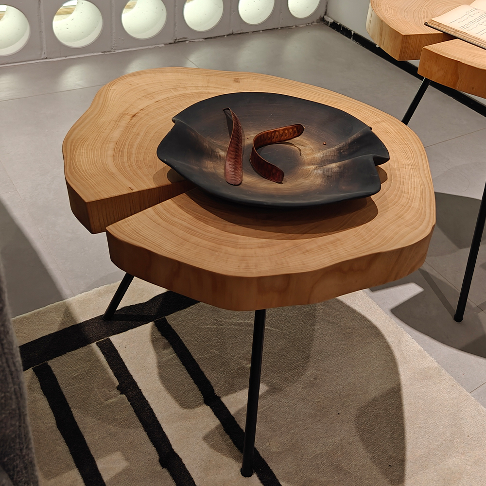 К тому же, его элегантные ножки из углеродистой стали придают изделию современный и стильный вид, создавая совершенное сочетание натурального и индустриального стилей. Стол из коллекции Wabi-Sabi воплощает в себе философию простоты и естественности, что делает его идеальным выбором для ценителей уникального дизайна и тактильных ощущений.
