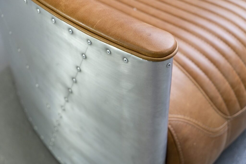 Каркас дивана выполнен из прочной лиственницы, что обеспечивает надежную основу и долголетие изделия. Эстетичная отделка из алюминия добавляет ему характер, а выбор обивки из кожи или экокожи позволит вам создать уникальный стиль в вашем пространстве. Наполнитель из пенополиуретана гарантирует невероятный комфорт, позволяя вам удобно расслабиться после долгого дня.