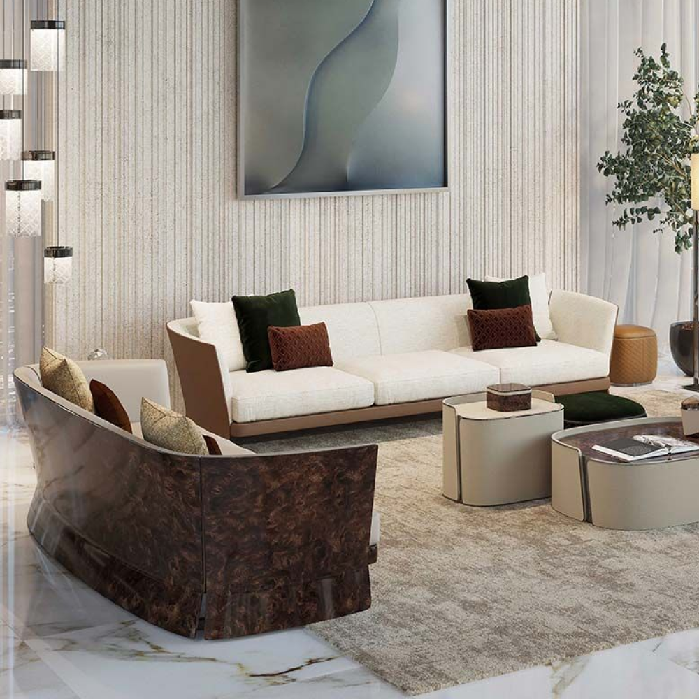 — Обивка из натуральной кожи А+: роскошная и приятная на ощупь, натуральная кожа подчеркивает элегантность дивана и обеспечивает его лёгкость в уходе.