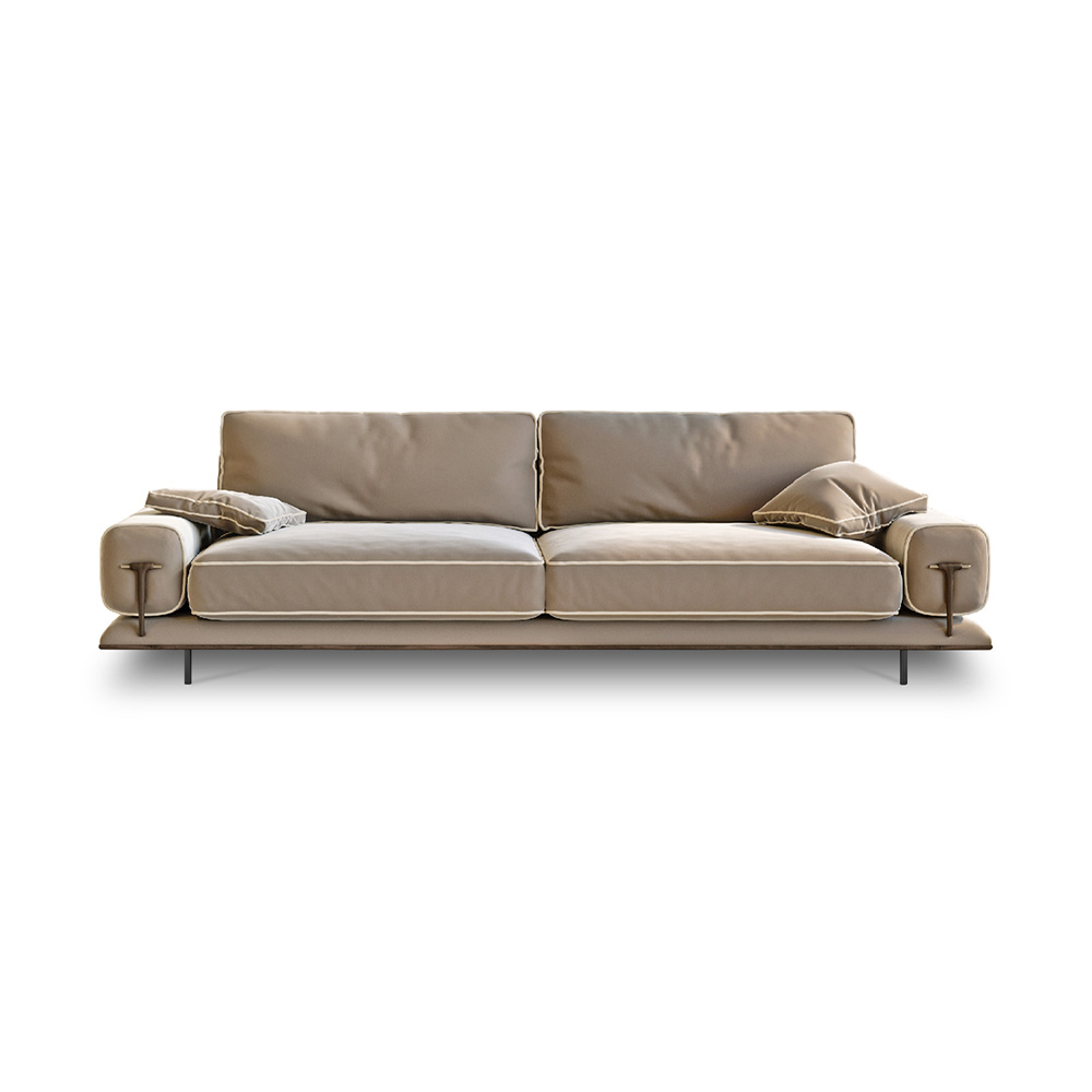 Этот прямой диван на три места выполнен с использованием высококачественных материалов, которые обеспечивают долговечность и уют. Главное наполнение — высокоэластичная губка и пух, создающие мягкость и поддержку, а внутренняя рама из массива сосны обеспечивает надежность и устойчивость. Ножки из матовой бронзы из нержавеющей стали добавляют современный шарм и подчеркнут вашу индивидуальность.