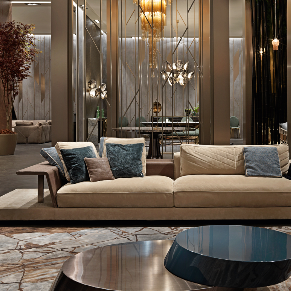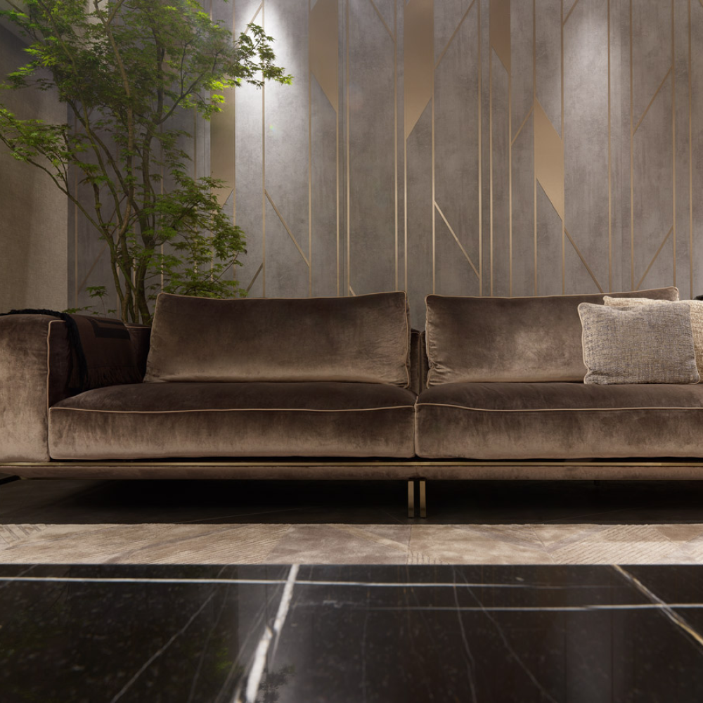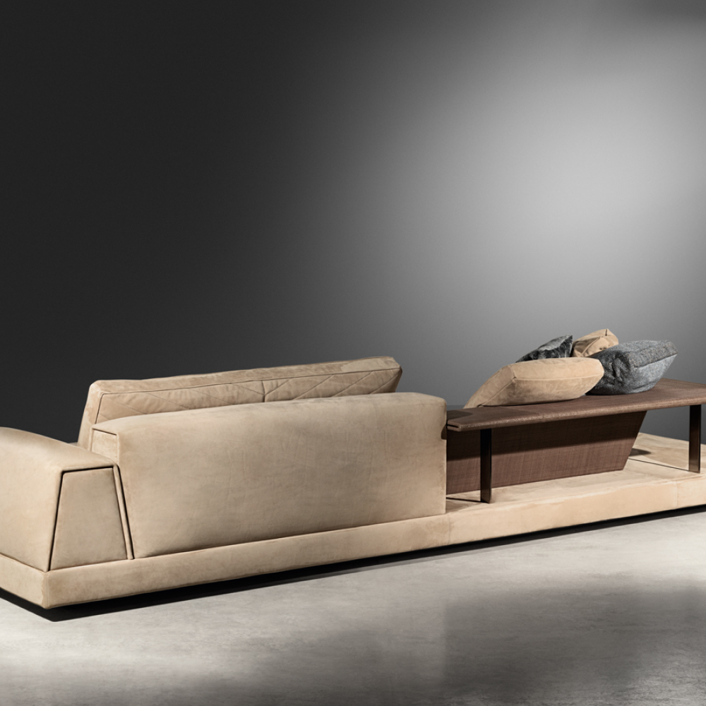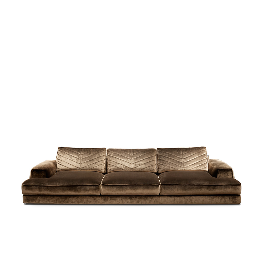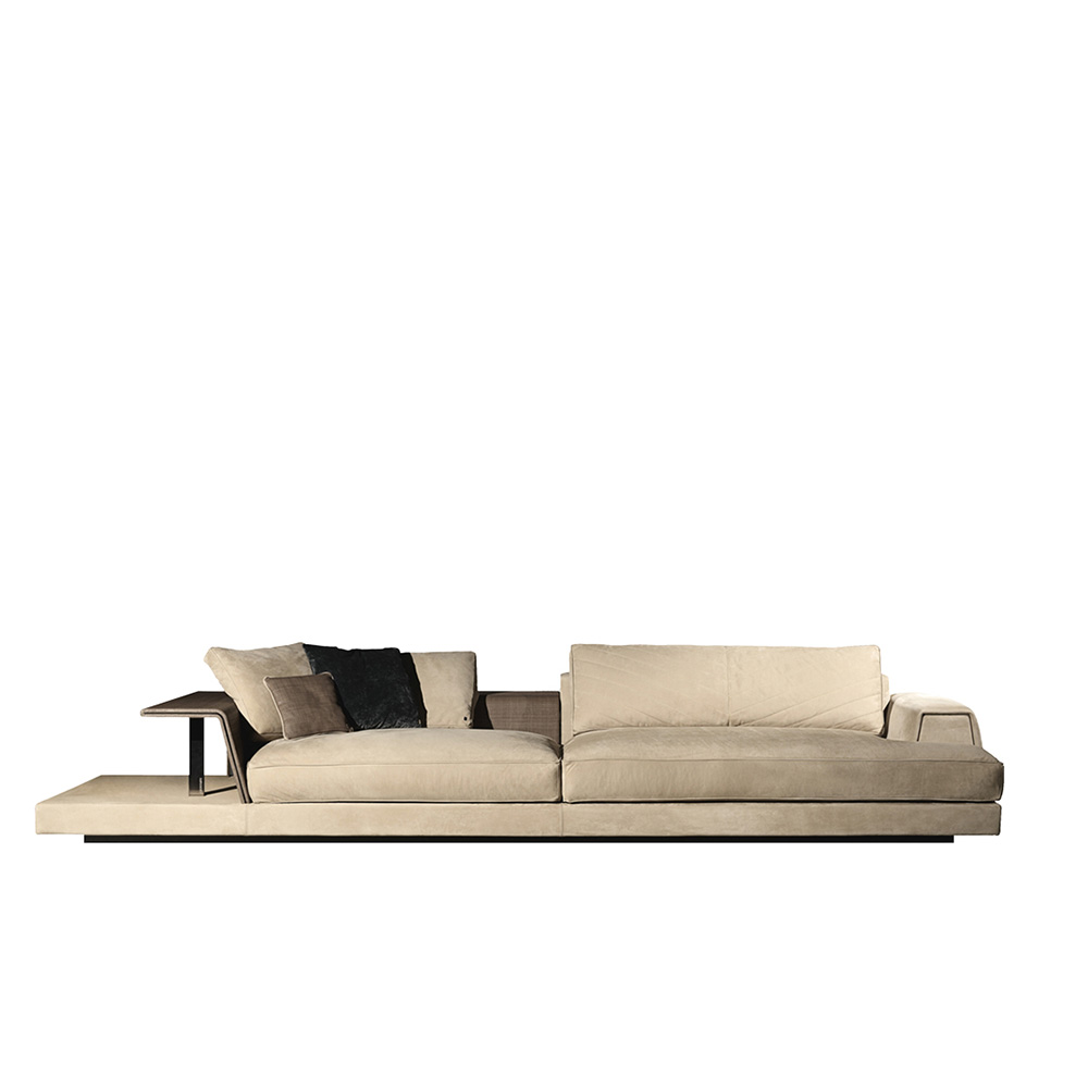 Изготовлен с использованием высокоэластичной губки и мягкого пуха, он гарантирует безупречный комфорт даже во время длительного отдыха. Внутренняя рама из массива сосны придаёт дивану прочность и долговечность, а матовые ножки из нержавеющей стали и титана добавляют ему современного шарма.