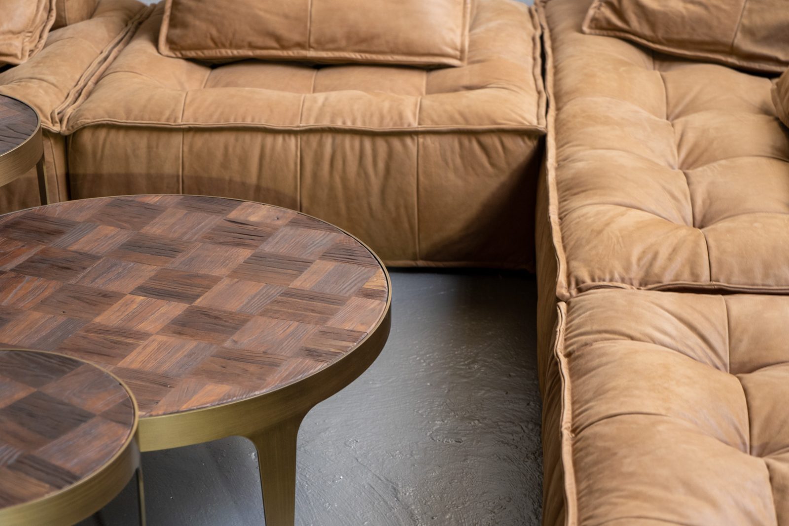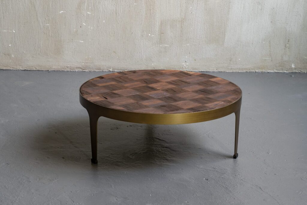 — Современный дизайн: Округлая форма столика напоминает о простоте и функциональности индустриального стиля, в то время как изысканная отделка привносит элемент утончённости.