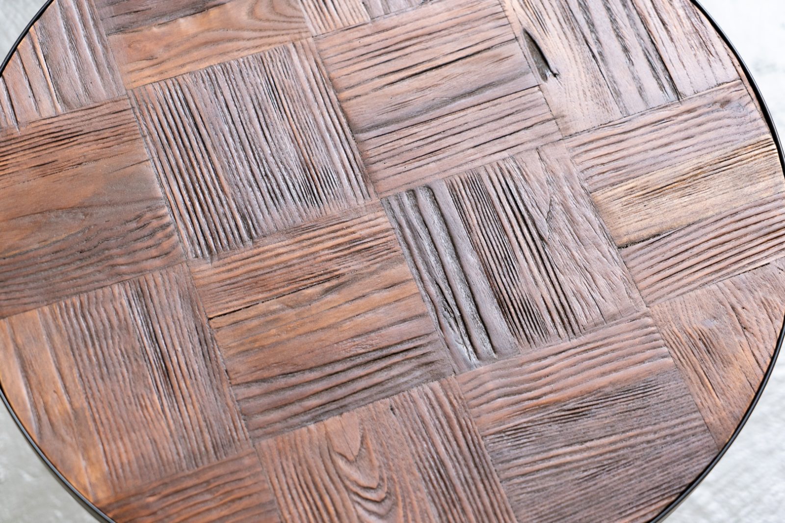 Столешница выполнена в стиле шахматной доски, где разница клеток определяется определенной фактурой древесного рисунка. А необыкновенный оттенок поверхности заставляет рассматривать замысловатые борозды и линии бесконечно.