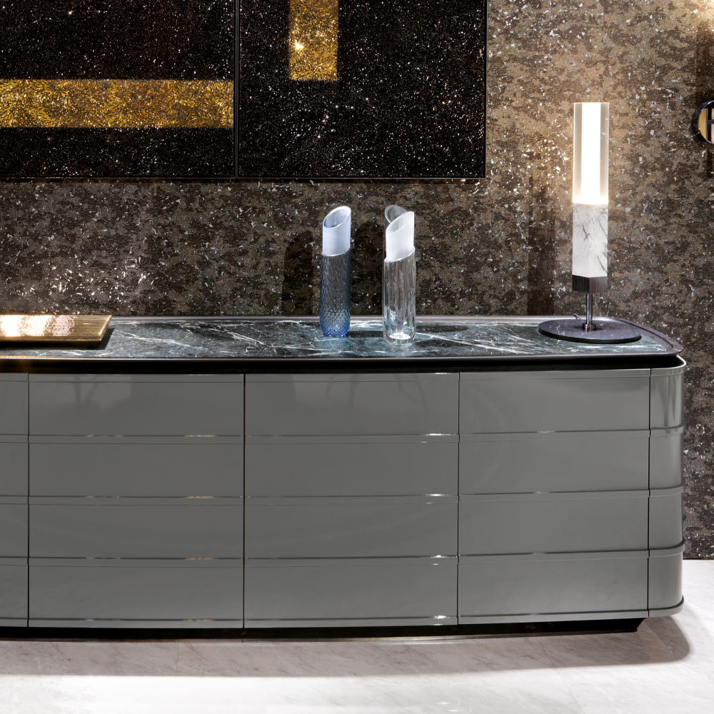 Изящные материалы: Комод выполнен с верхней поверхностью из натурального мрамора, который придаёт роскошный вид и гарантирует долговечность. Корпус из нержавеющей стали с матовым покрытием розового золота добавляет современный штрих и великолепно гармонирует с любым декором. Ящики выполнены из E1 плиты с высоким содержанием волокна, что делает их прочными и устойчивыми к повреждениям.