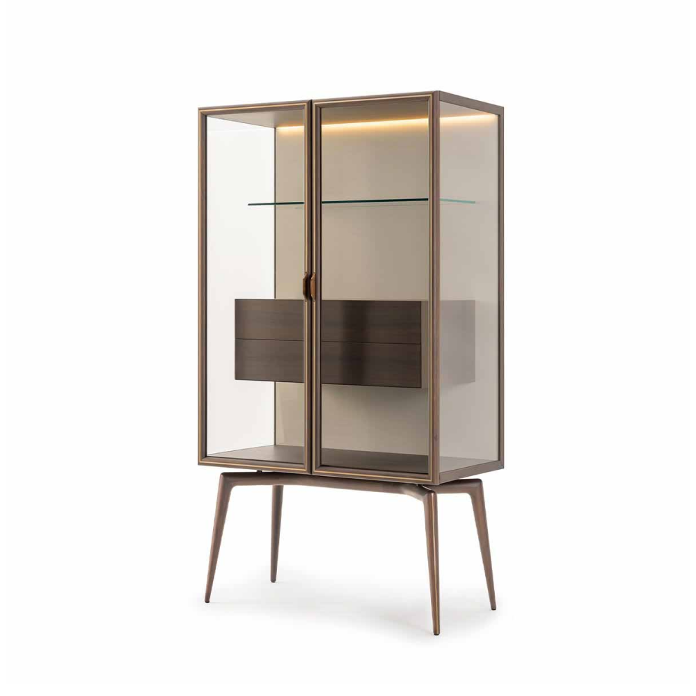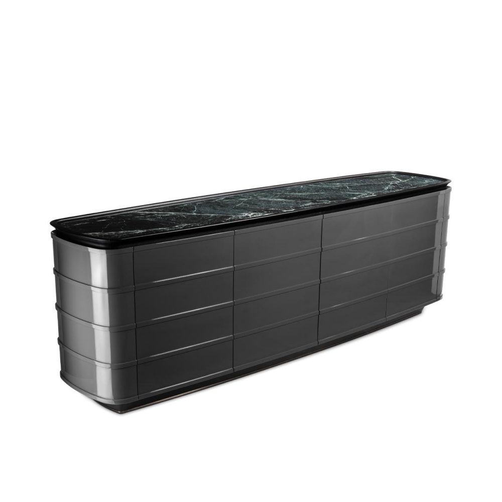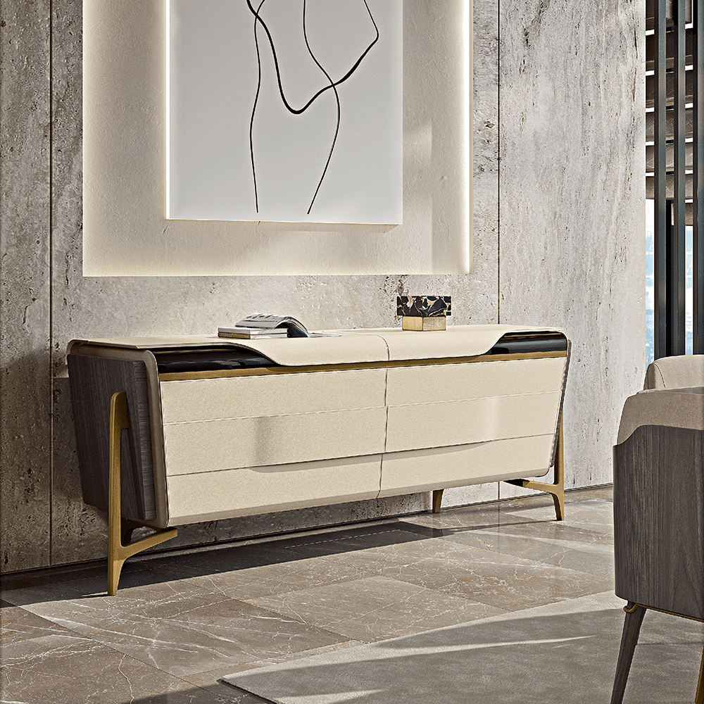 Особое внимание стоит уделить ножкам комода — прочные и изысканные, они выполнены из нержавеющей стали с бронзовой полировкой, что придает изделию элегантный штрих и стабильность. Эта деталь не только обеспечивает надежную поддержку, но и добавляет ощущения утонченного стиля вашему интерьеру.