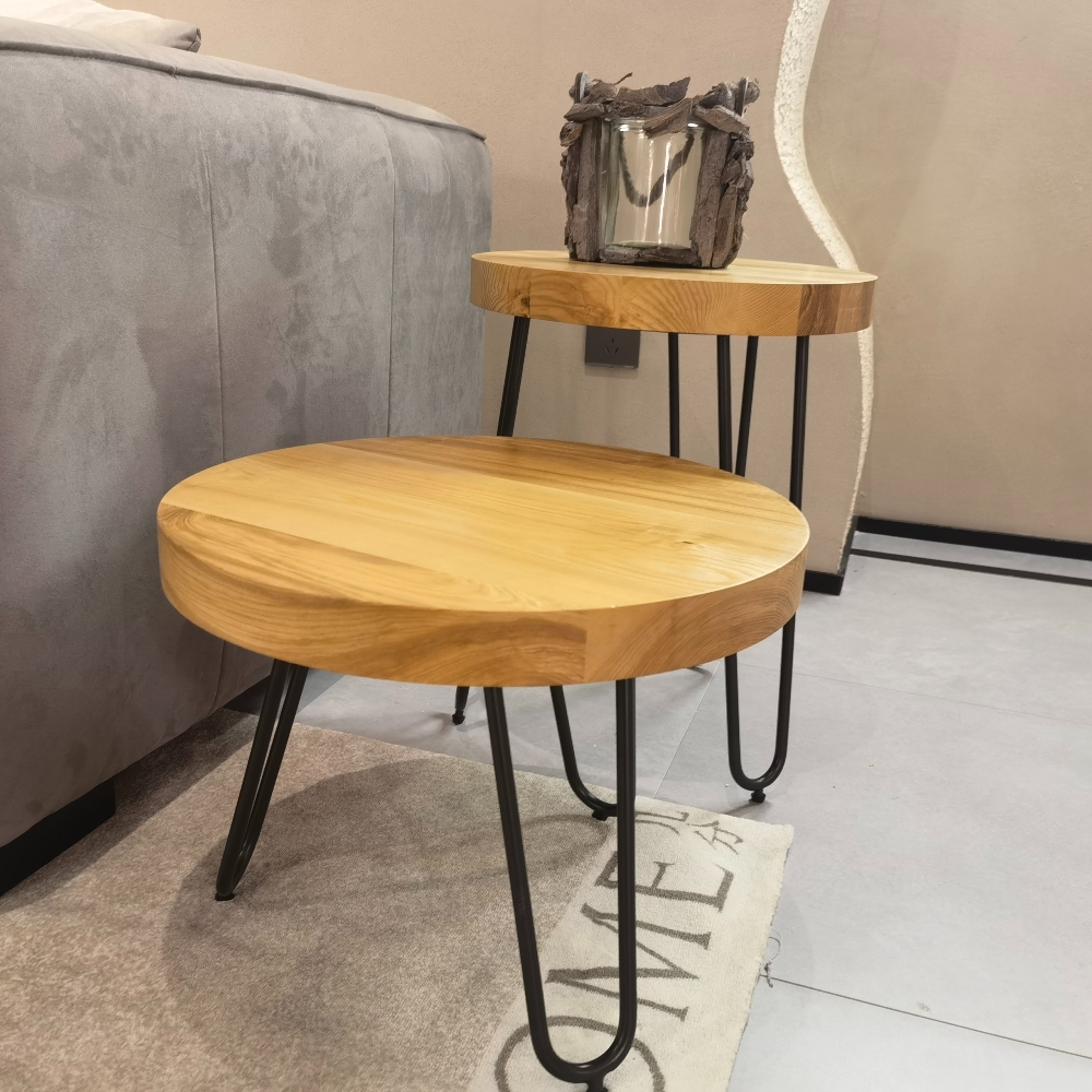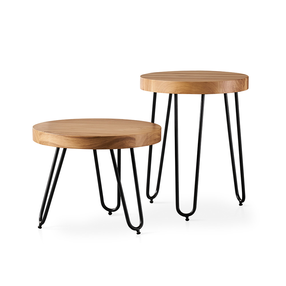 Столы изготовлены из прочного массива ясеня, который добавляет тепла и характерности каждому интерьеру, а детали из углеродистой стали придают им современный и стильный вид. Круглая форма столов не только элегантна, но и практична — такие столы идеально вписываются в любое пространство, создавая уютную атмосферу для встреч с друзьями или вечерних посиделок с книгой.