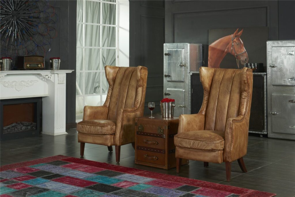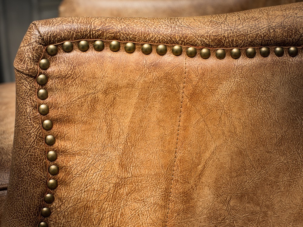 - Отделка из латунных клёпок придает креслу аристократичный образ.