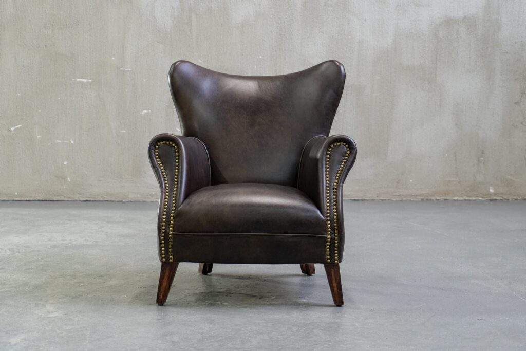 — Качество материалов: Каркас кресла изготовлен из лиственницы, что обеспечивает ему надежность, а ножки выполнены из массива дерева, подчеркивая натуральную красоту и стойкость к повреждениям. Обивка из коровьей кожи Top Grain не только приятна на ощупь, но и устойчива к износу, что гарантирует долгий срок службы этого изделия.