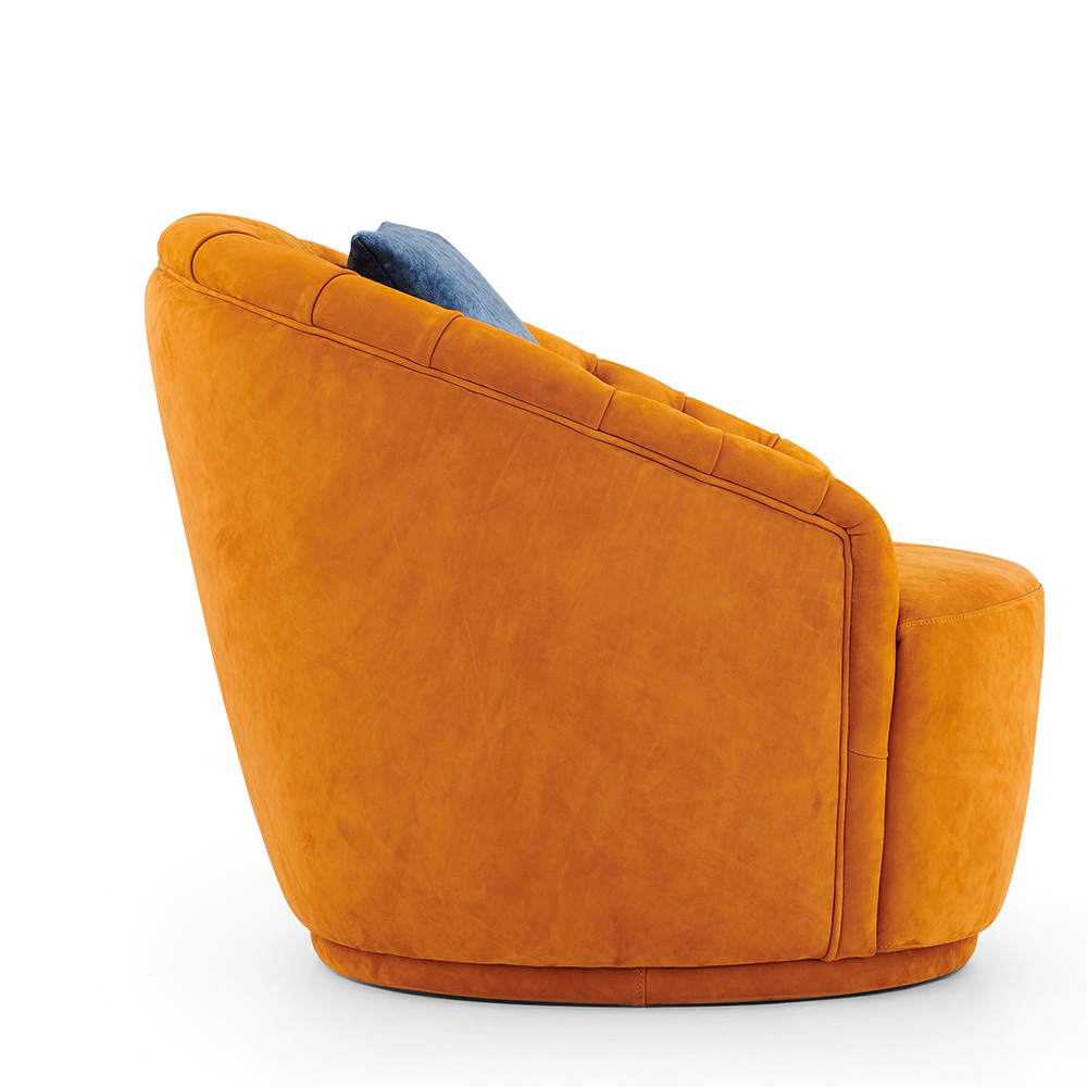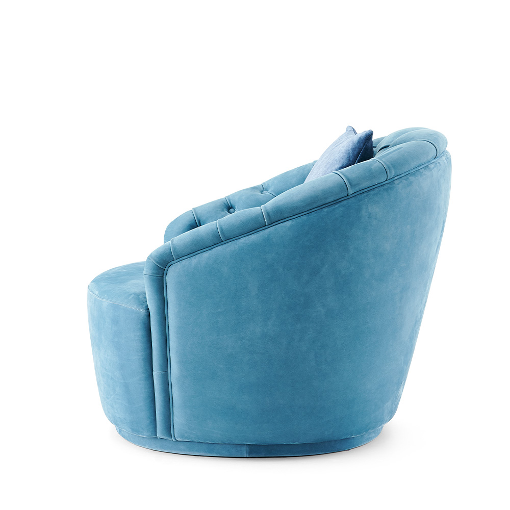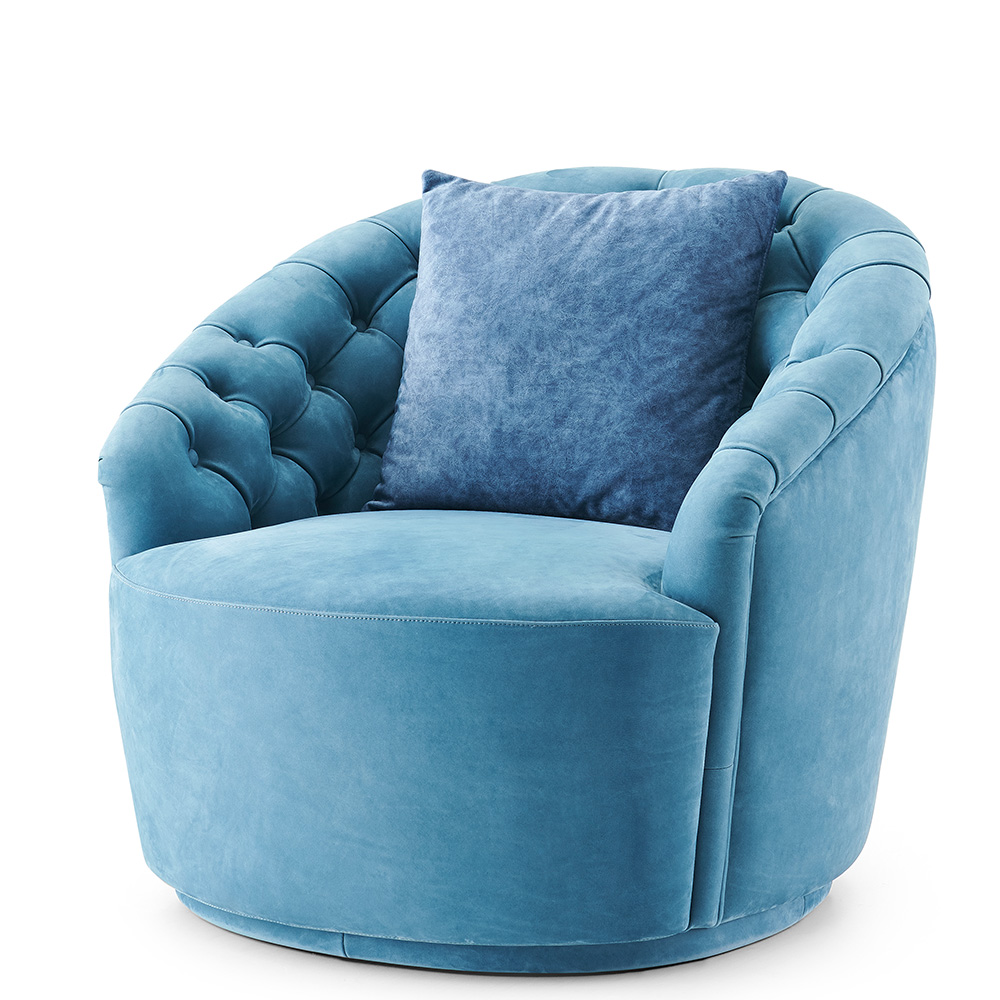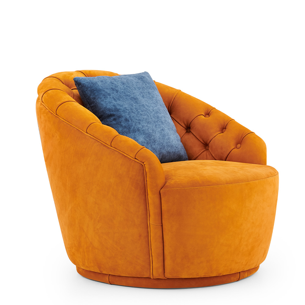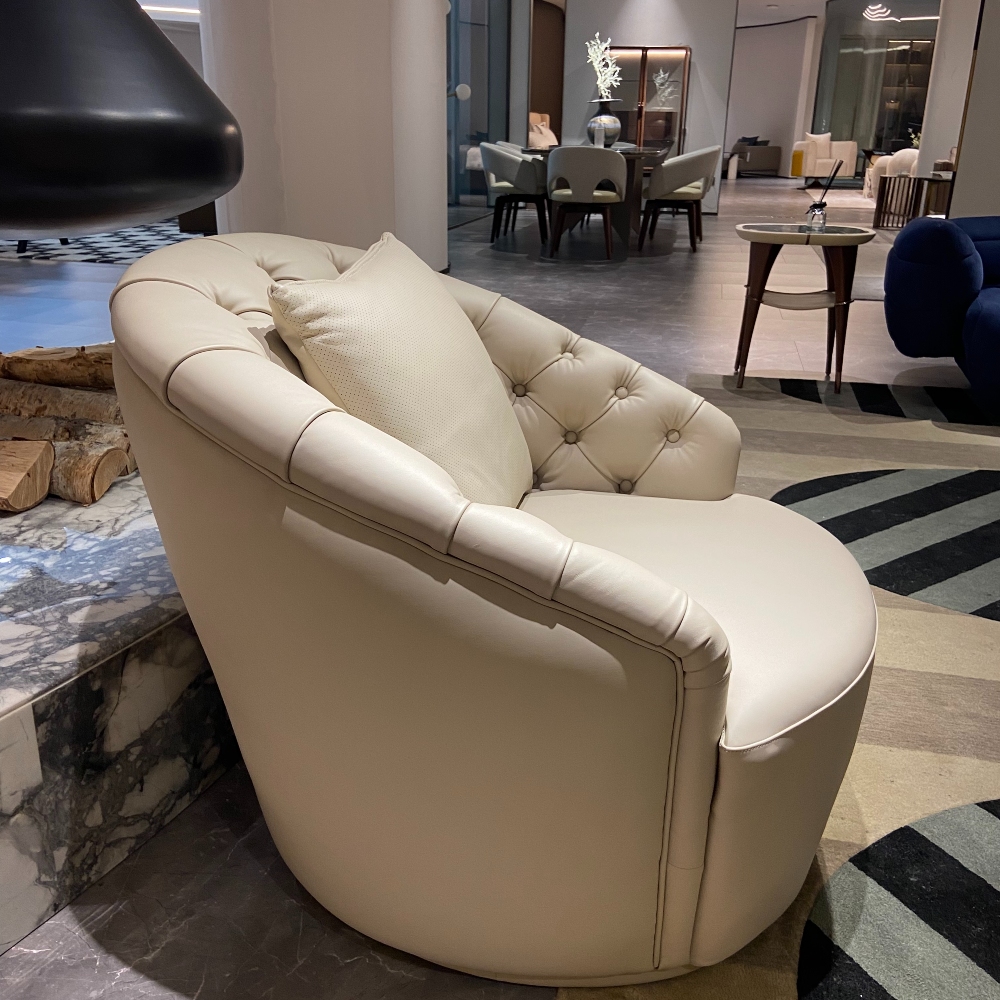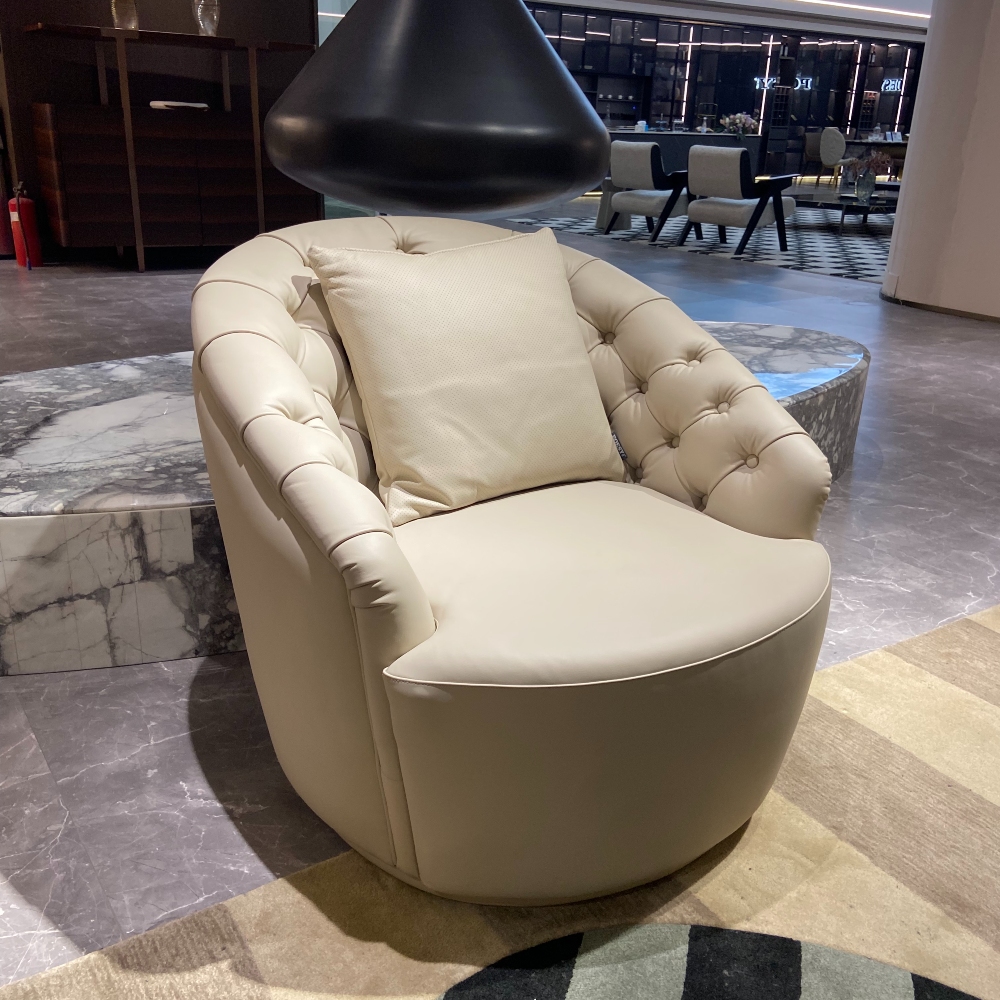 — Стильный внешний вид: Круглая форма кресла и широкий выбор отделки делают его универсальным элементом декора, который легко впишется в любую обстановку — от современных до классических интерьеров.