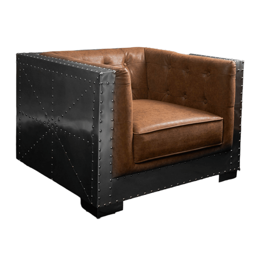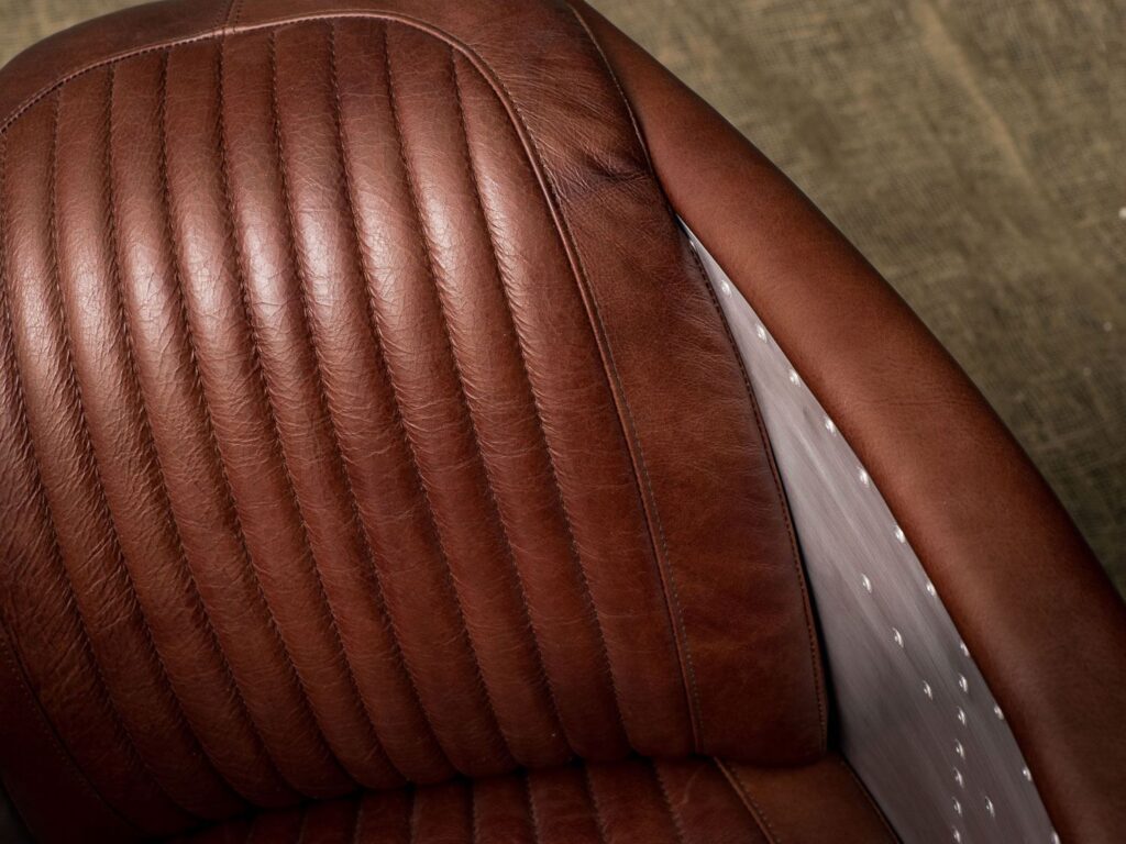 Корпус кресла выполнен из прочной лиственницы, а его элегантная отделка из алюминия придает модели индустриальный шарм. Обивка из коровьей кожи top grain излучает роскошь и стиль, а тщательно подобранный наполнитель из пенополиуретана и полиэфирного волокна обеспечивает комфорт, о котором вы мечтали. Вы сможете наслаждаться каждой минутой, проведенной в этом кресле — будь то чтение книги, работа или просто время для отдыха.