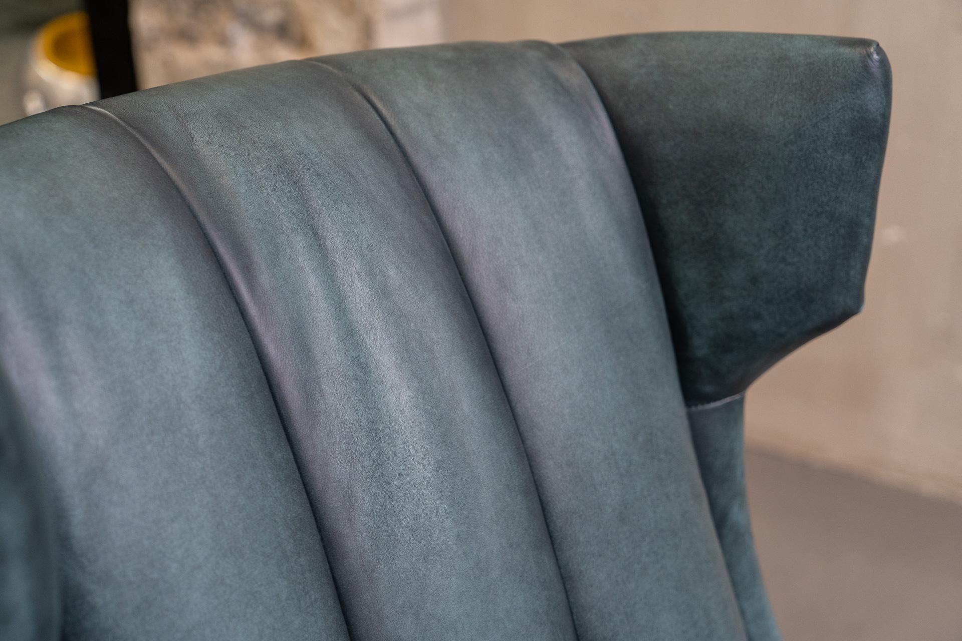 Каждая деталь MERLY отражает мастерство и качество ручной работы. Основание кресла изготовлено из массива дерева, что гарантирует надежность и долговечность. Обивка выполнена из коровьей кожи top grain и льняной ткани, предлагая вам выбор между текстурированным comfort и роскошным стилем. Для завершения образа, кресло обрамлено изящными латунными гвоздиками, придающими ему нотки классики и стиля.