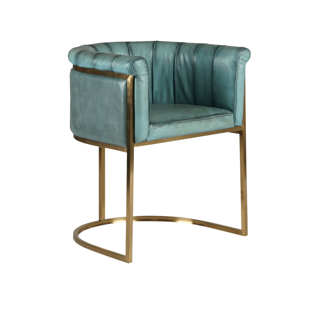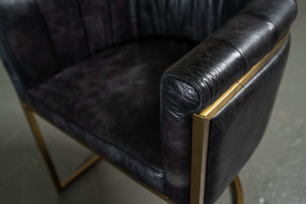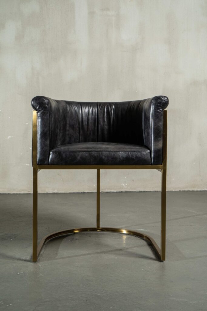 Изготовленное с любовью и вниманием к деталям, кресло оснащено прочным каркасом из металлических ножек, выполненных из нержавеющей стали золотого цвета, что придает ему нотку роскоши и элегантности. Обивка из коровьей кожи top grain излучает не только красоту, но и долговечность, гарантируя, что ваше кресло будет радовать глаз на протяжении многих лет.