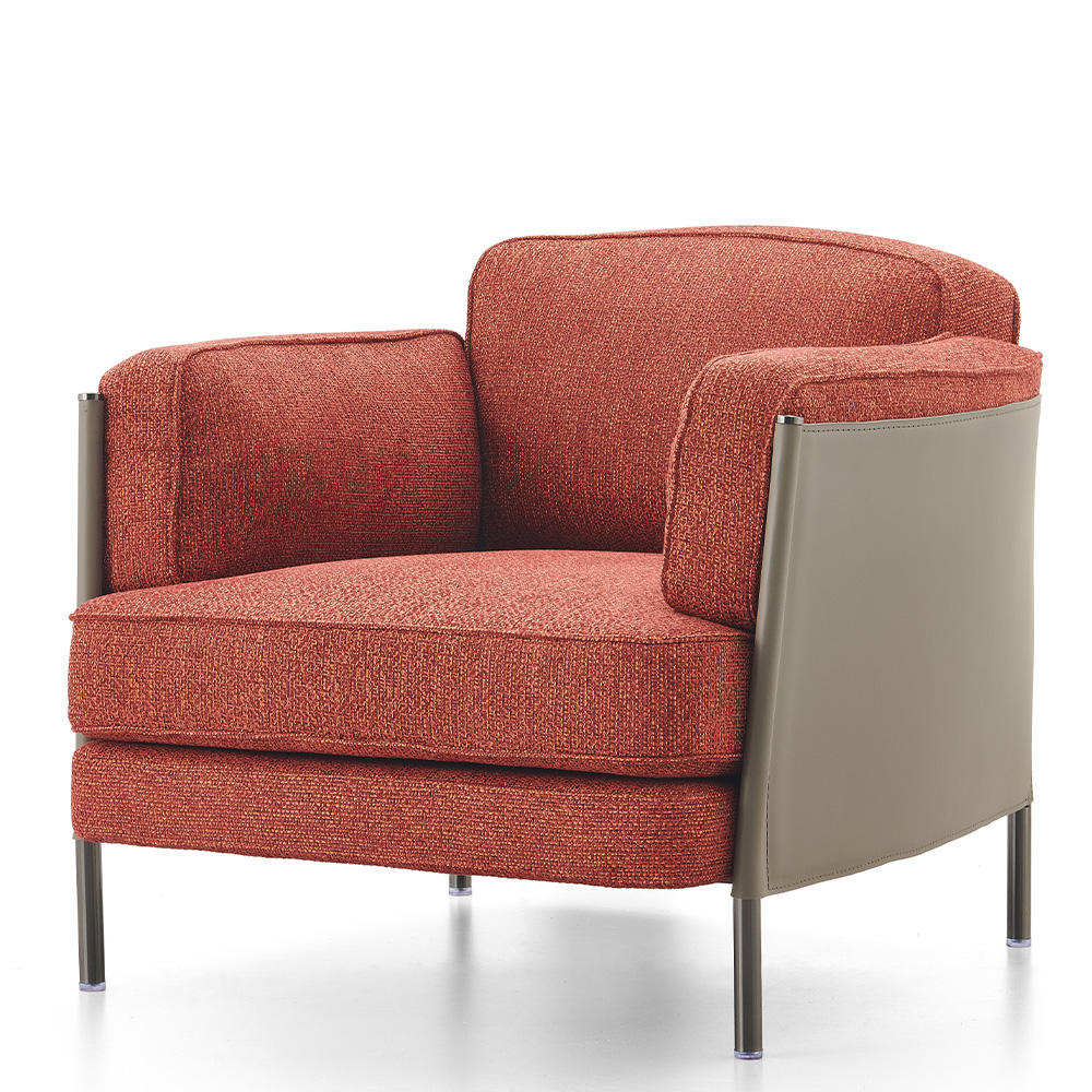 Shelley отличается элегантной формой в стиле кубизма и линейной геометрией, подчеркнутой наличием седельной кожи и точной техникой ее обработки. Компактная концепция дизайна от GamFratesi, играющая на гармоничных контрастах между структурированной внешней оболочкой и мягким, уютным интерьером.