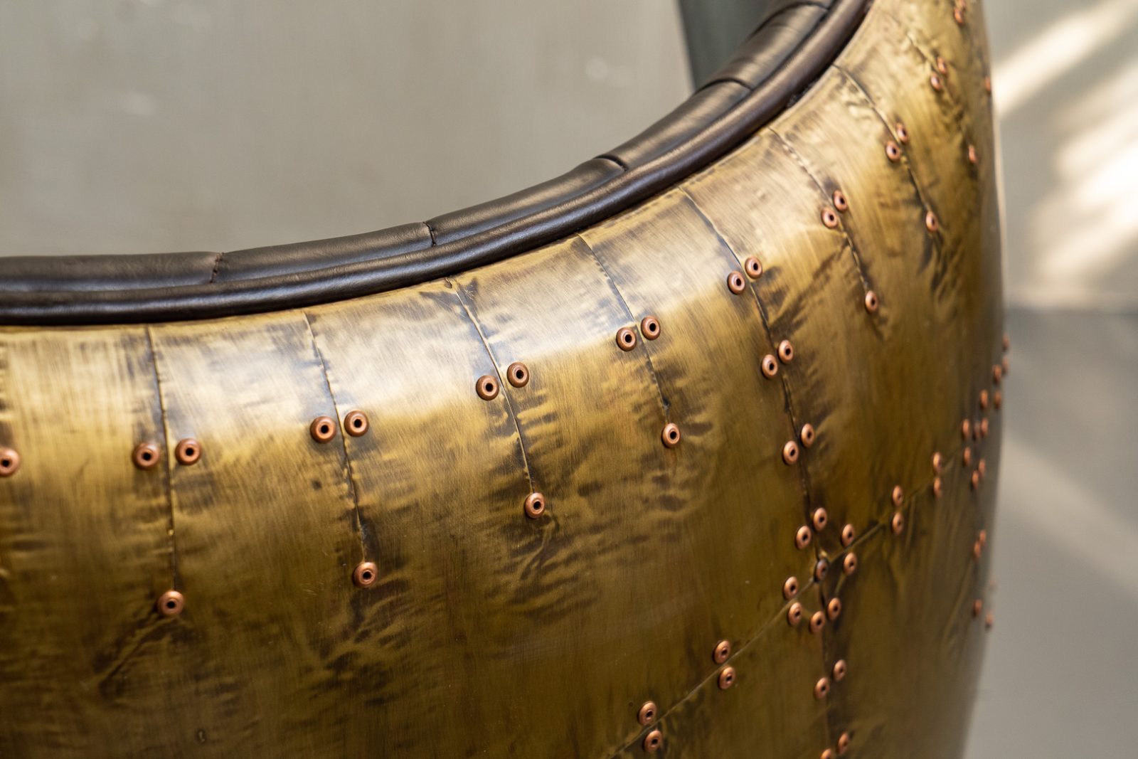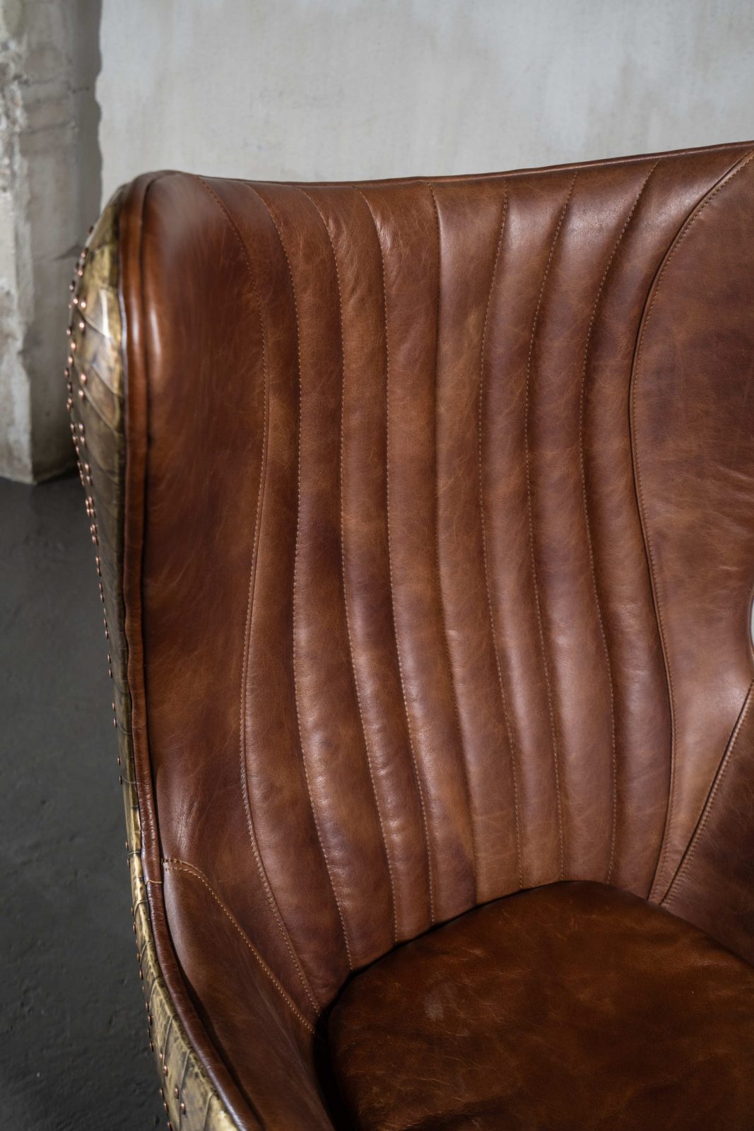 Изготовленное с использованием прочного металлического каркаса и надежной нержавеющей стали, это кресло не только выглядит шикарно, но и превосходно справляется с ежедневными нагрузками. Латунная отделка добавляет шарма и элегантности, а обивка из коровьей кожи Top Grain обеспечивает роскошное ощущение при каждом прикосновении.