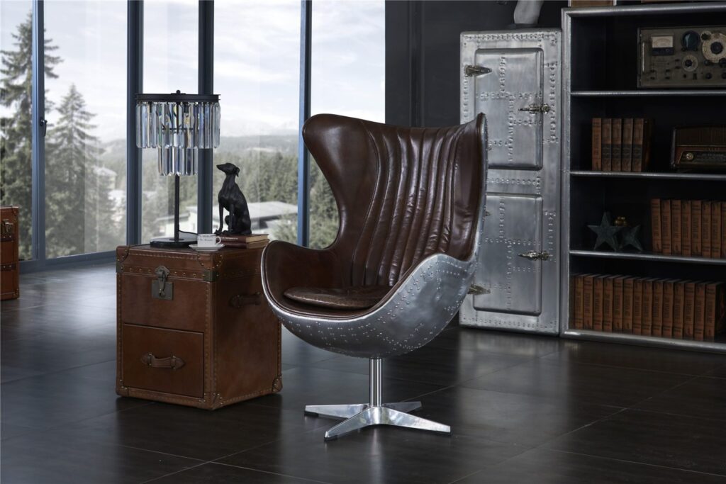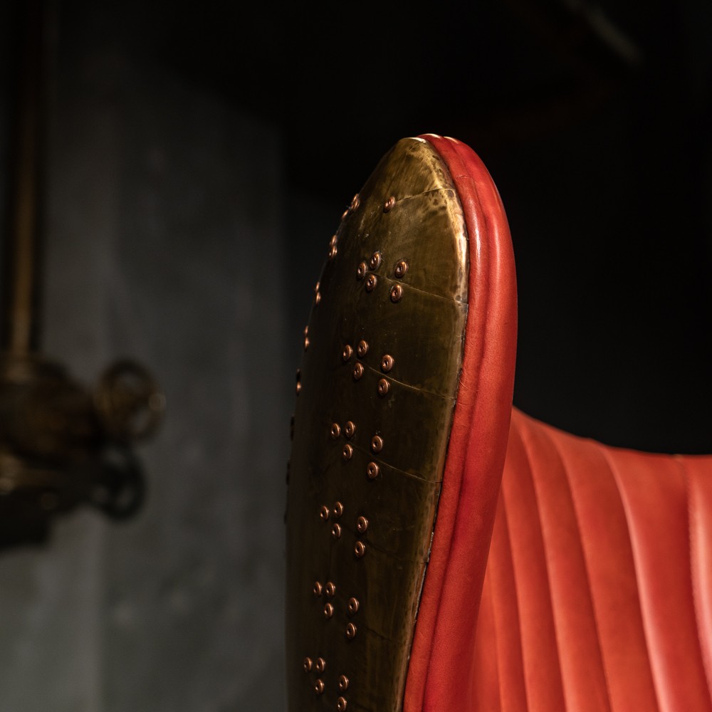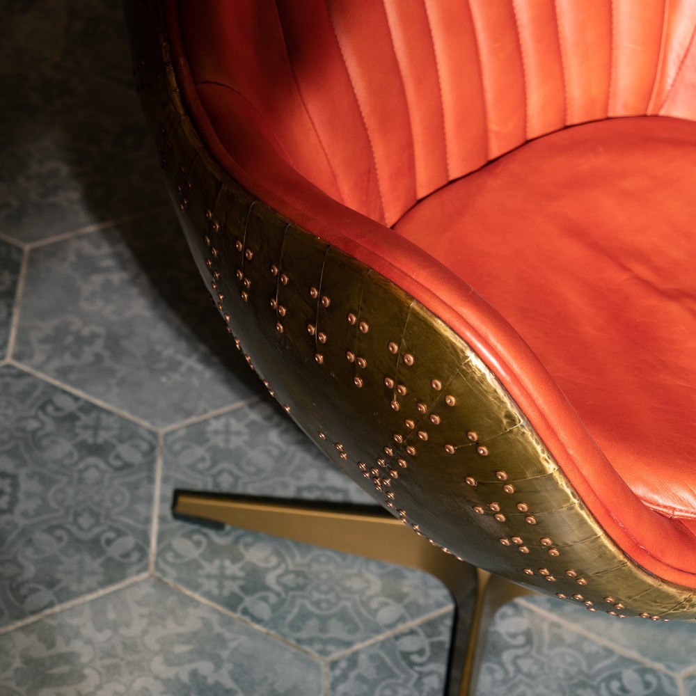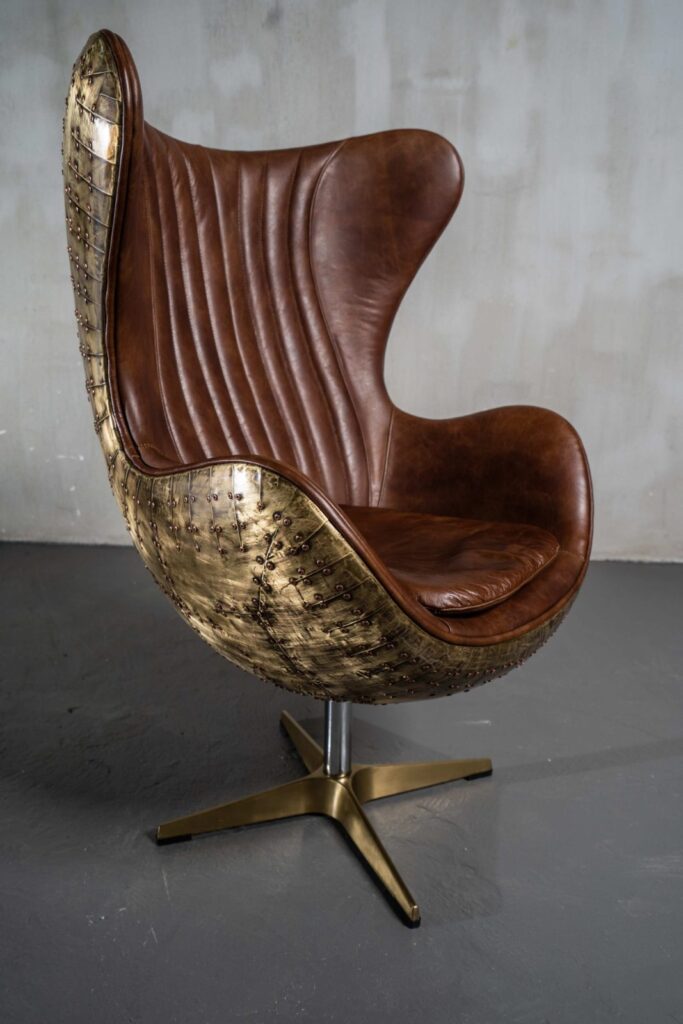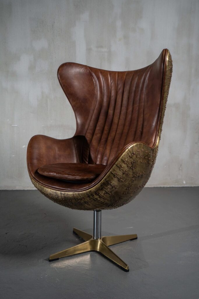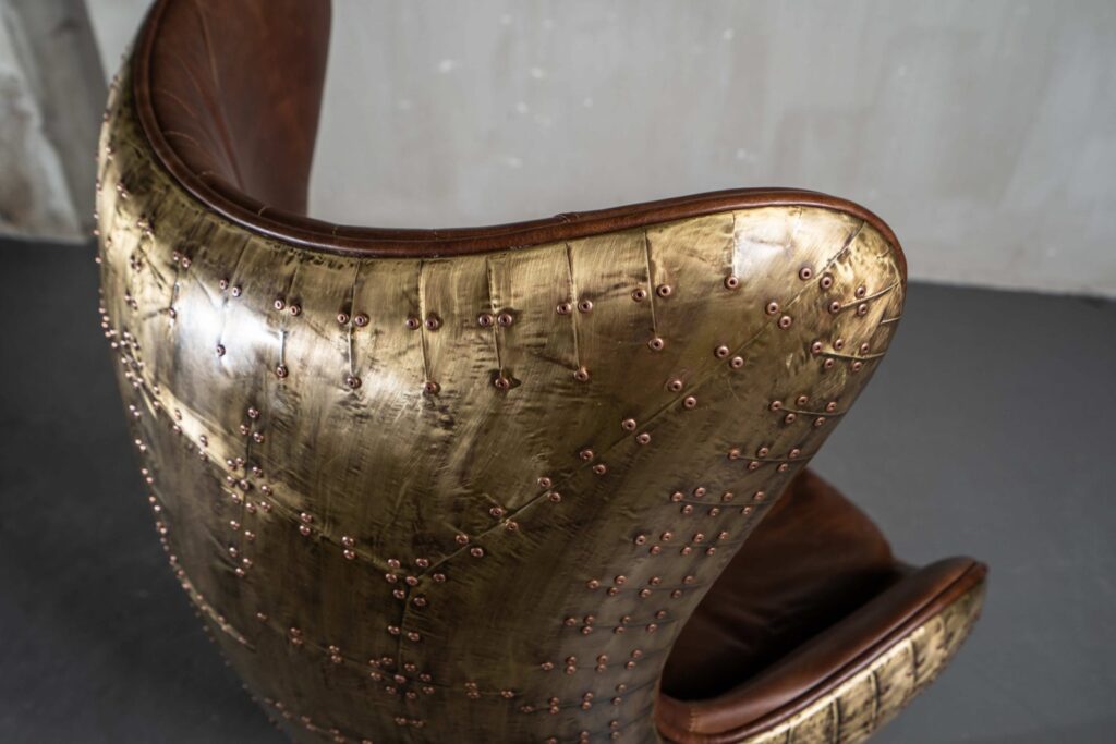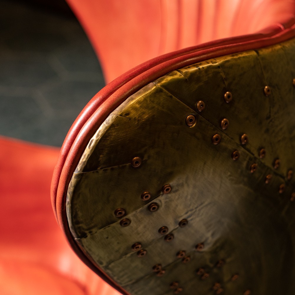 Изготовленное с использованием прочного металлического каркаса и надежной нержавеющей стали, это кресло не только выглядит шикарно, но и превосходно справляется с ежедневными нагрузками. Латунная отделка добавляет шарма и элегантности, а обивка из коровьей кожи Top Grain обеспечивает роскошное ощущение при каждом прикосновении.