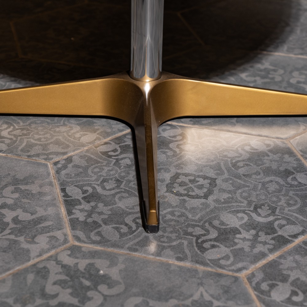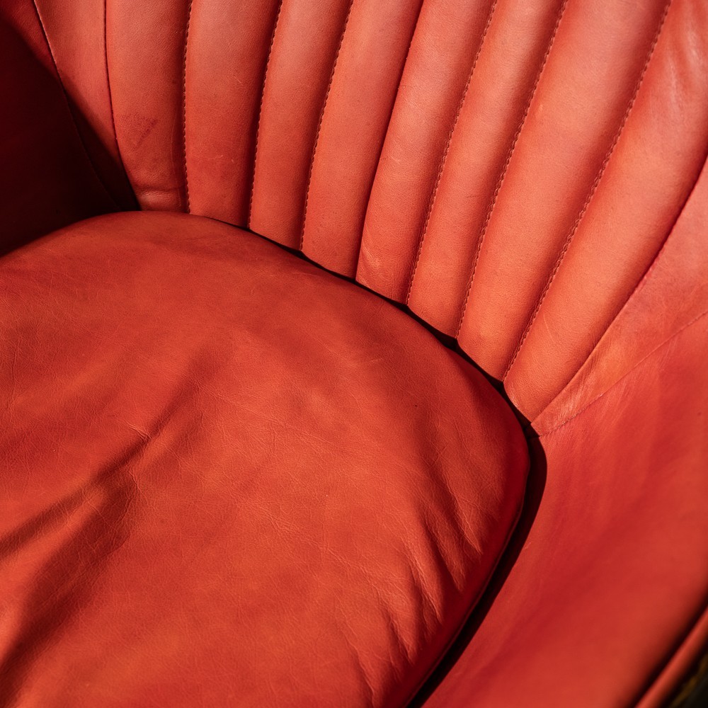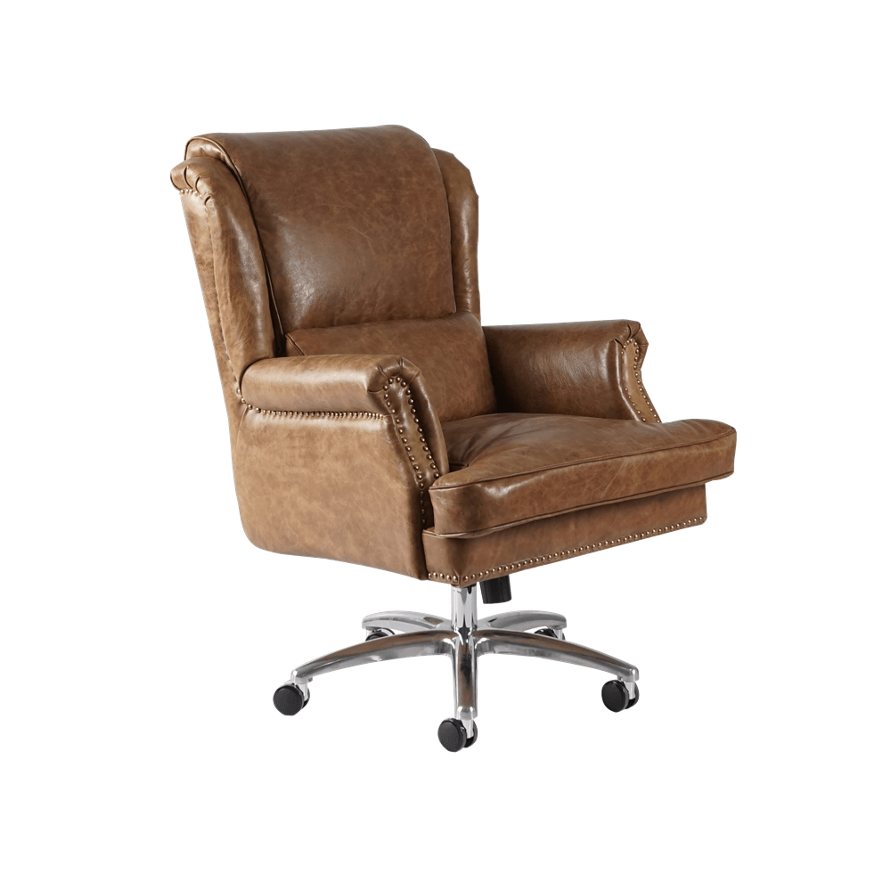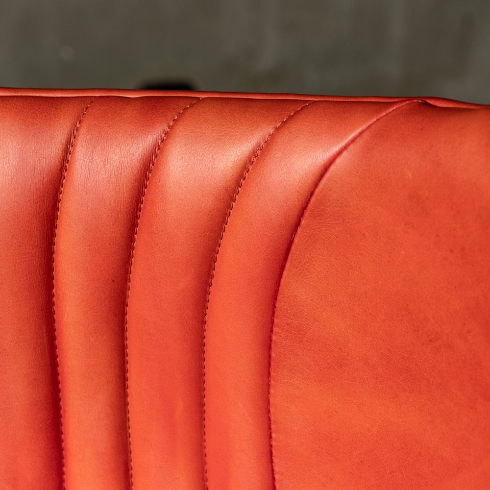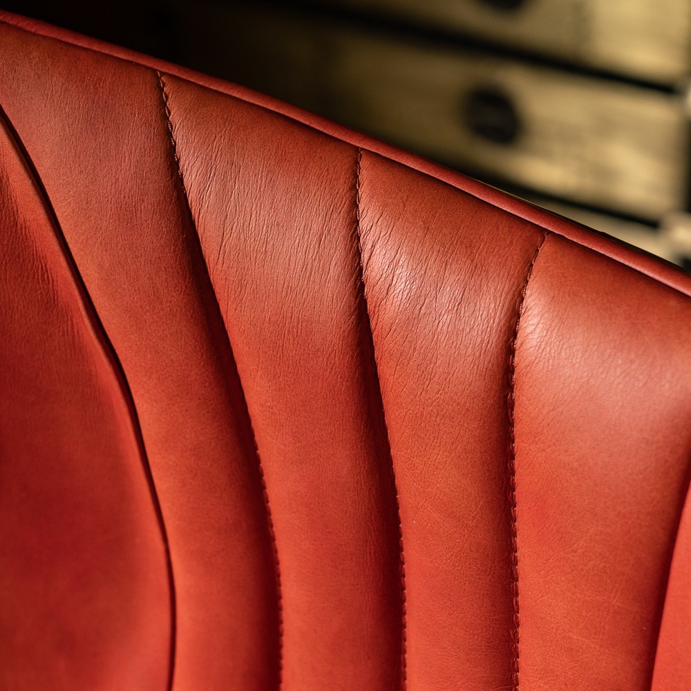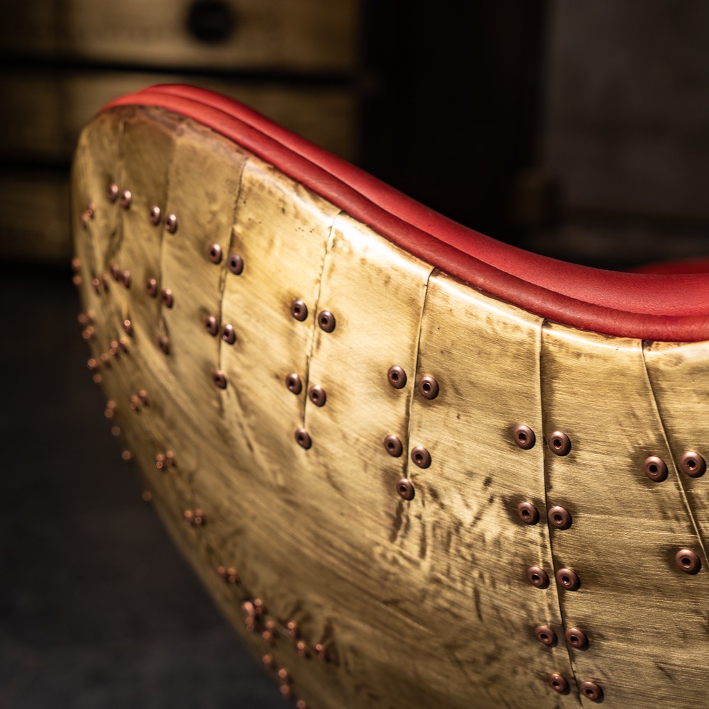 Изготовленное с использованием прочного металлического каркаса и надежной нержавеющей стали, это кресло не только выглядит шикарно, но и превосходно справляется с ежедневными нагрузками. Латунная отделка добавляет шарма и элегантности, а обивка из коровьей кожи Top Grain обеспечивает роскошное ощущение при каждом прикосновении.