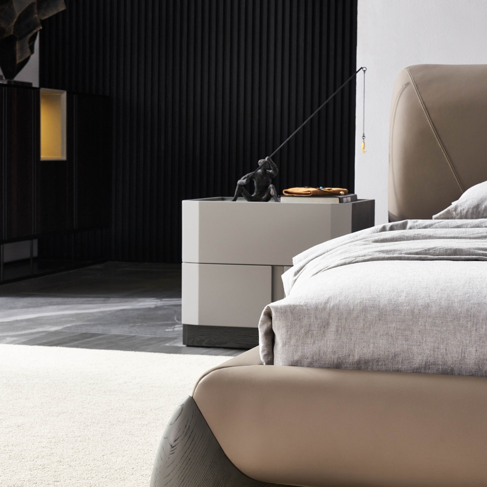 — Обивка из искусственной кожи: Стильная обивка придает кровати утонченный вид, а также легкость в уходе, что делает ее отличным решением для современных интерьеров.