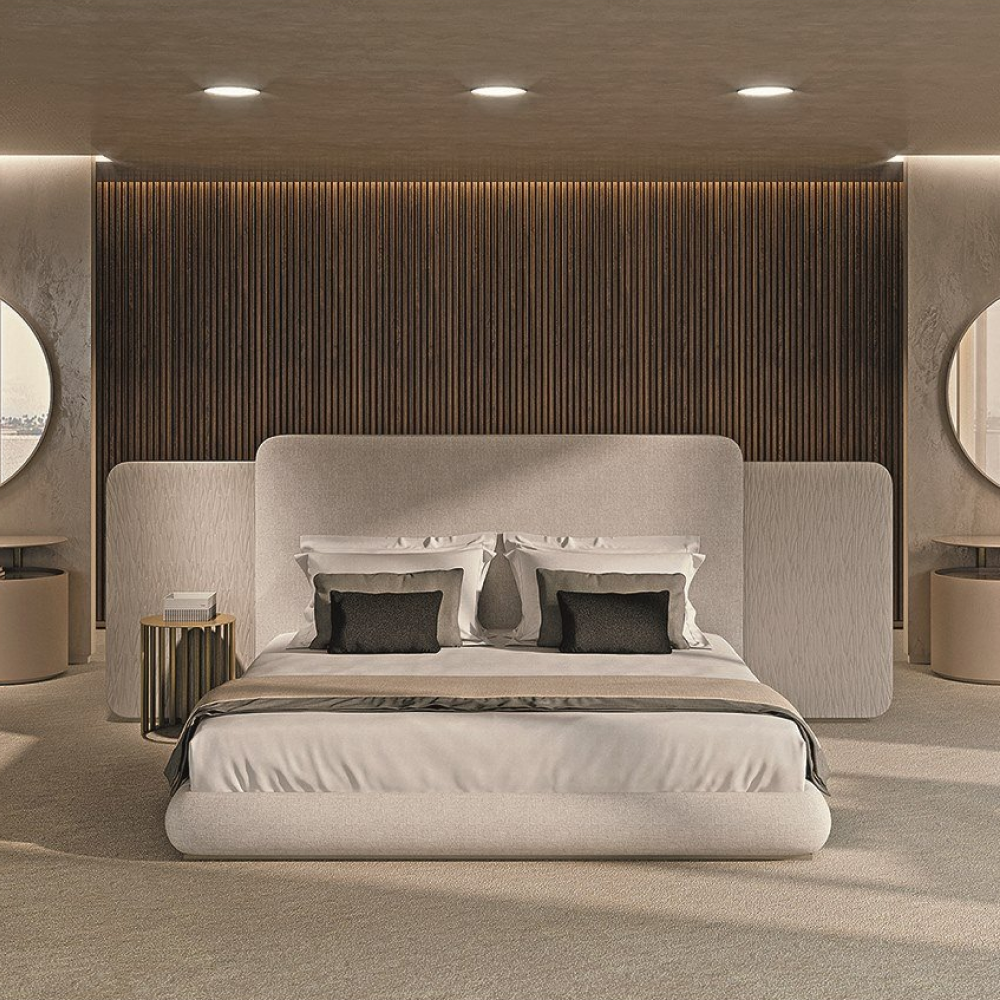 Уникальным акцентом модели является широкое изголовье, обитое натуральной кожей А+. Эта кожа высокого качества не только привносит в вашу спальню нотки роскоши, но и обеспечивает долговечность и легкость в уходе. ¡Кровать доступна в различных вариациях натуральной кожи, позволяя вам выбрать идеальный оттенок для вашего интерьера!