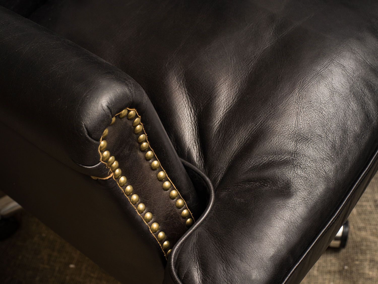 — Эстетика и функциональность: Роскошная отделка латунными гвоздиками добавляет завершающий штрих, выделяя кресло среди других моделей. Это идеальное сочетание классического стиля и современных тенденций.