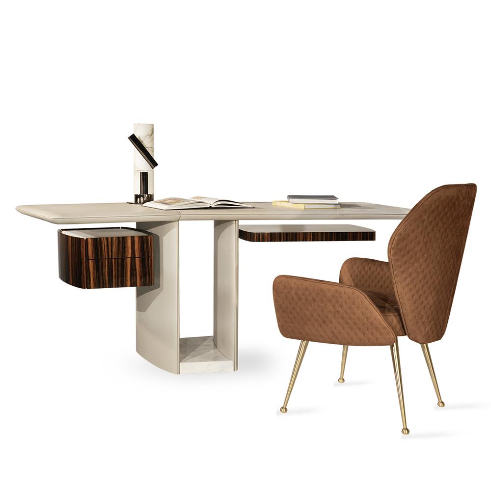 Создайте атмосферу вдохновения и стиля в своем кабинете или домашнем офисе с элегантным письменным столом Ebner. Этот стол не только эстетически привлекательный, но и практичный, что делает его незаменимым элементом вашего рабочего пространства.