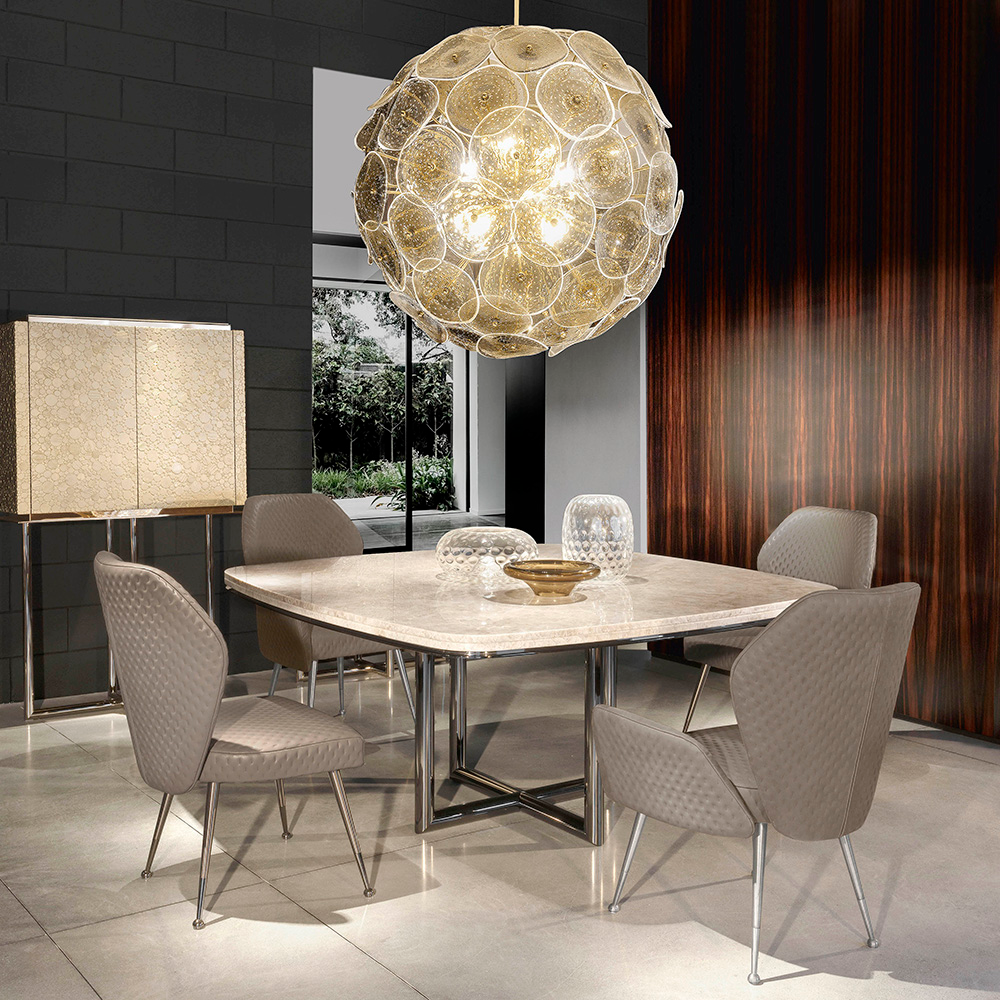 Внесите нотку утонченности в ваш интерьер с обеденным столом Teresa с мраморной столешницей! Этот изящный стол сочетает в себе элегантность и функциональность, становясь не только местом для приема пищи, но и настоящим произведением искусства в вашем доме.