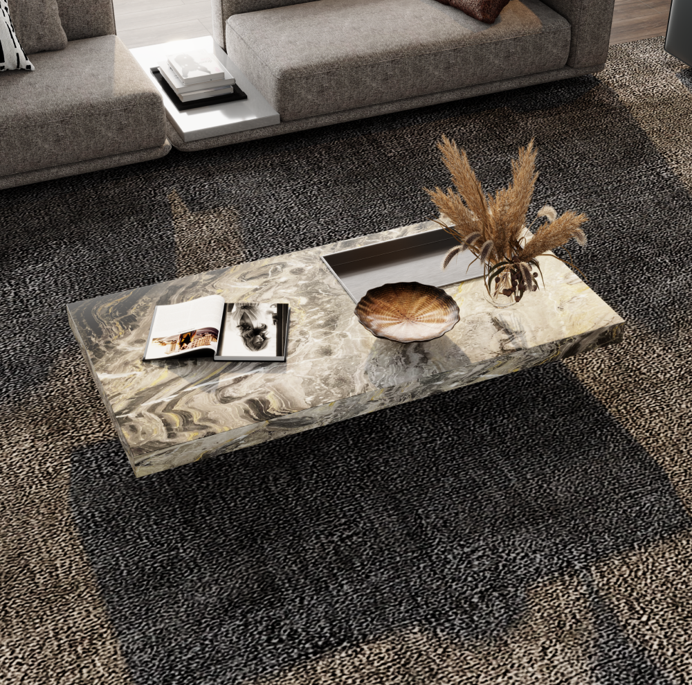 Прямоугольный стол из мрамора и вставкой из стали Bircham