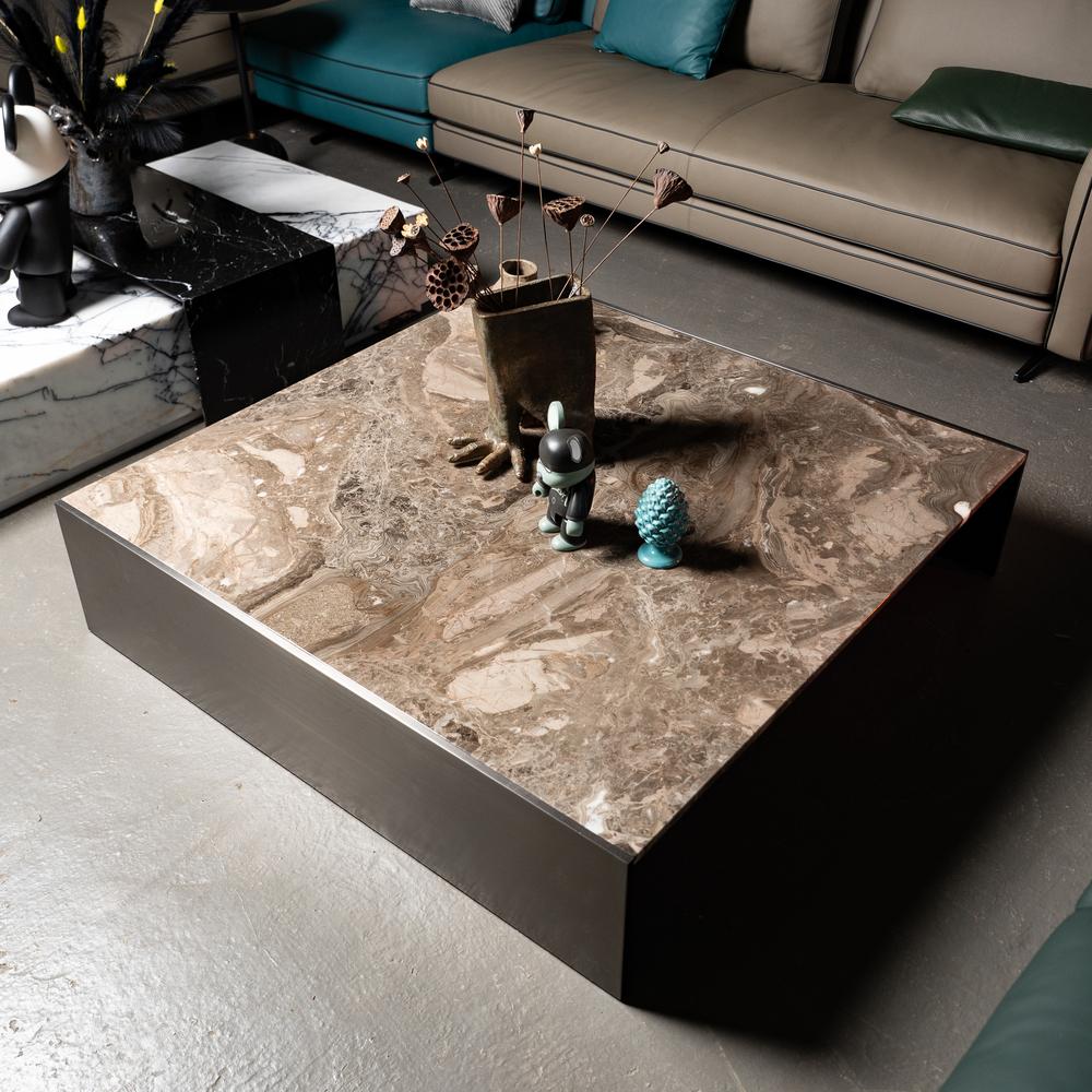 Квадратный стол из мрамора и вставкой из стали Bircham Square