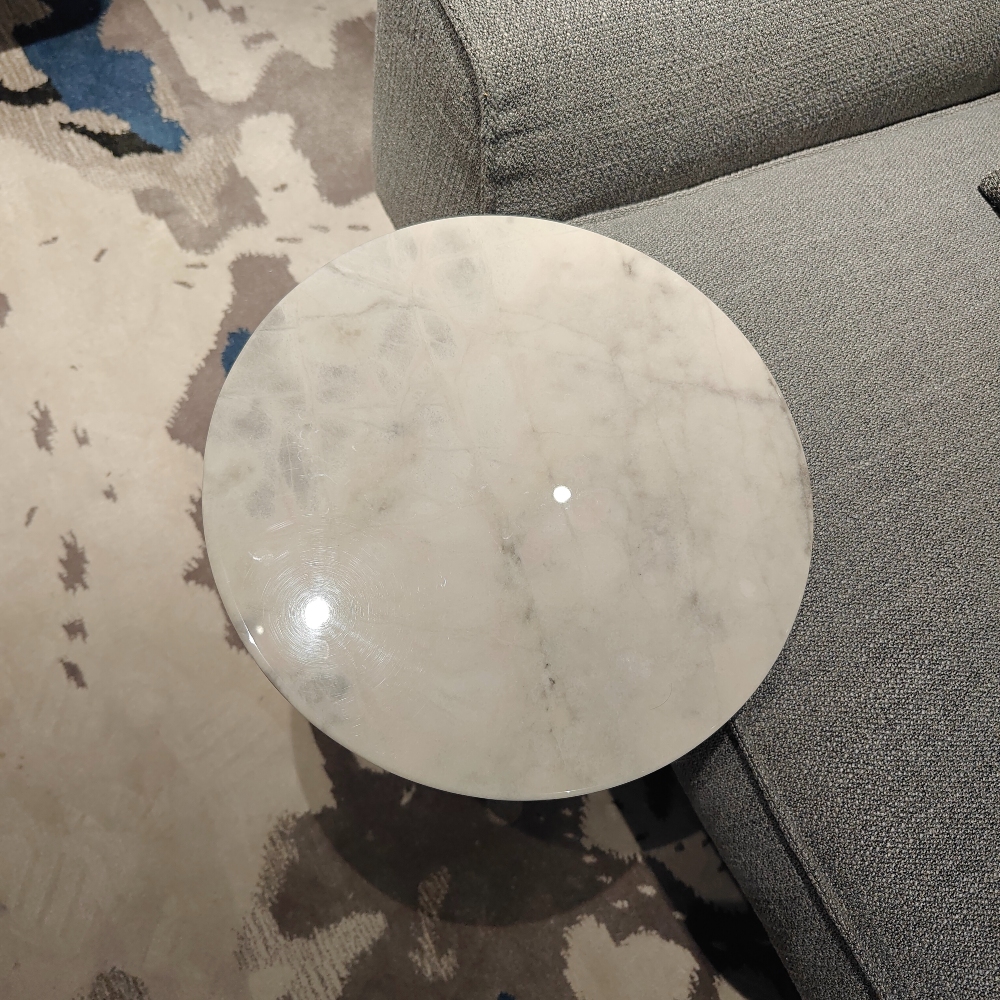 Столик выполнен из натурального мрамора, что придаёт ему не только стильный внешний вид, но и долговечность. Идеально округлая форма делает его универсальным и способным вписаться в любую обстановку, будь то уютная гостиная, современный офис или изысканный ресторан. Круглый столик смягчает углы и создает атмосферу уюта, в которой так приятно собираться с близкими.