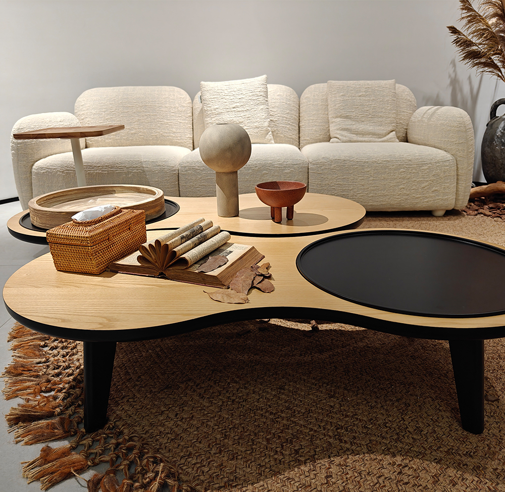 — Уникальный дизайн: Столик выделяется свободными формами и органичными линиями, что делает его не просто предметом мебели, а настоящим арт-объектом.