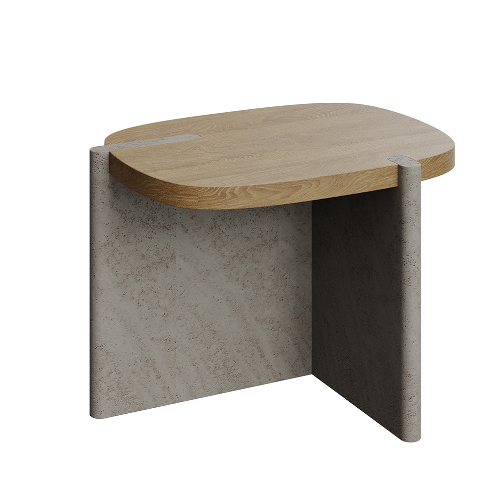 Столик выполнен из высококачественного натурального камня, обеспечивая прочность и долговечность, которые могут выдержать время. Он прекрасно сочетается с элементами из ЛДСП Е1 и ясеневого шпона, создавая гармоничный баланс между современным дизайном и традиционной природной текстурой.