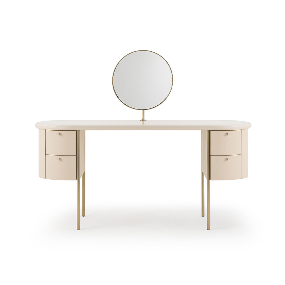 Столик с зеркалом Ptelea — это идеальный акцент для вашей спальни или ванной комнаты, который сочетает в себе функциональность и элегантность. Этот туалетный столик не только добавляет шика в ваше пространство, но и превращает ежедневные рутинные процедуры в роскошный ритуал.