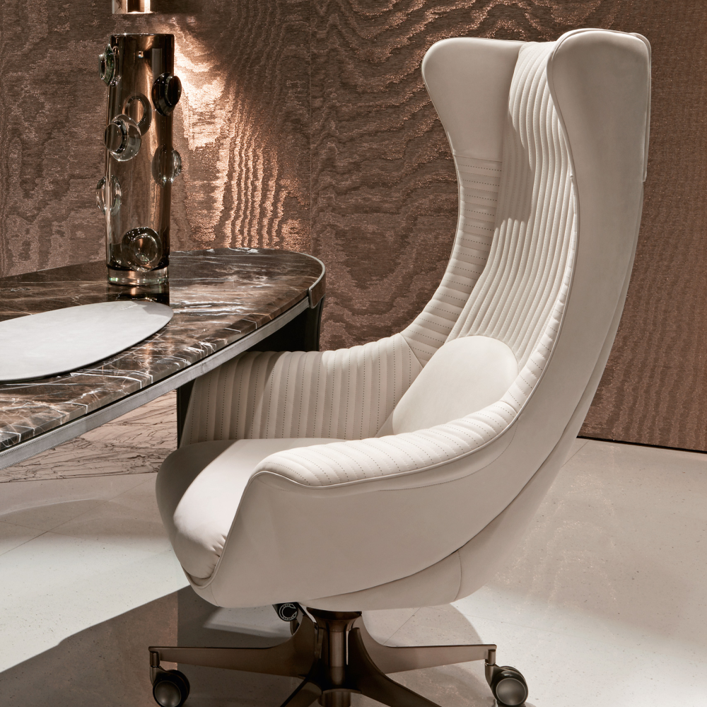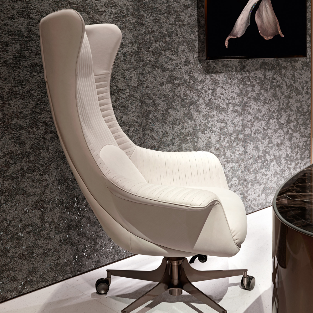 — Выбор материалов: Стул доступен в двух премиальных вариантах обивки: натуральная кожа, которая придаст вашему офису роскошь и изящество, и экокожа на основе микрофибры, обеспечивающая прочность и легкий уход.