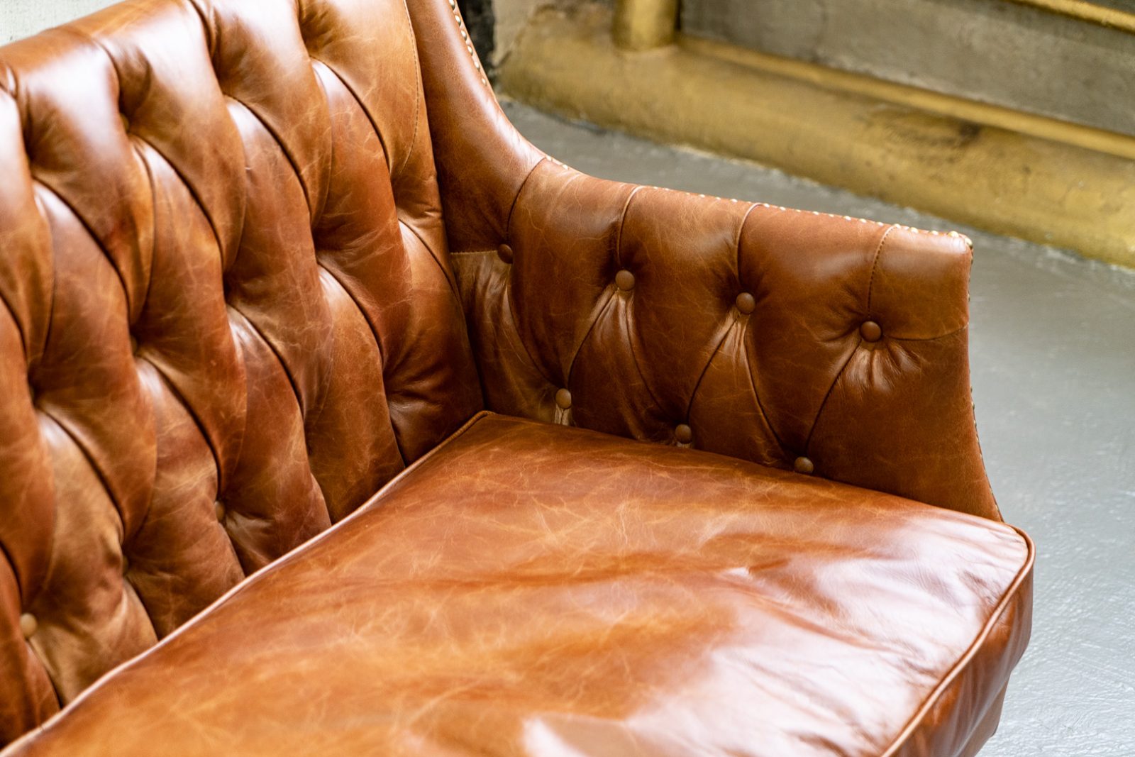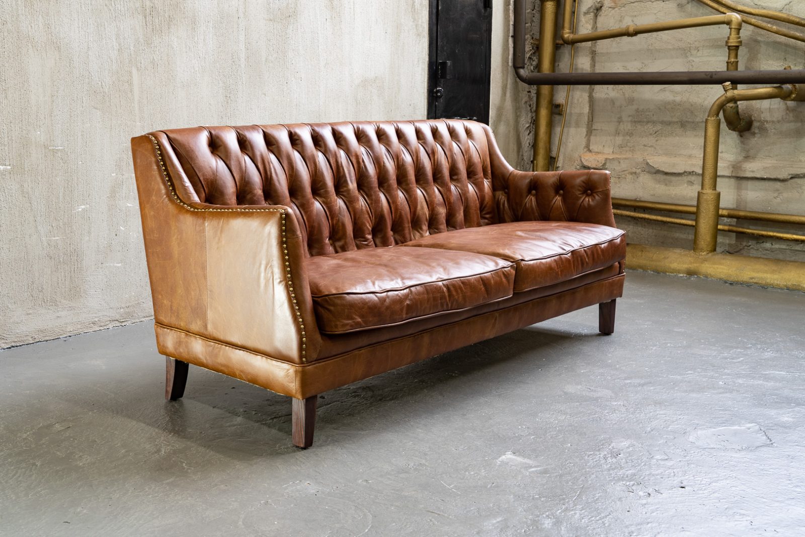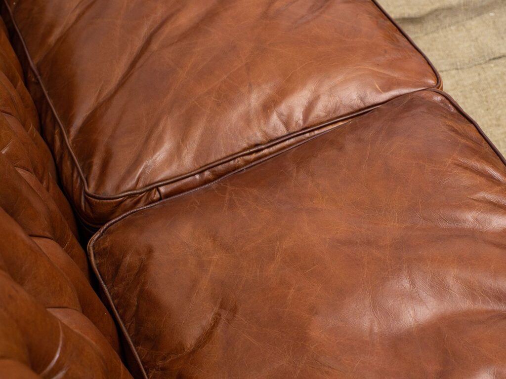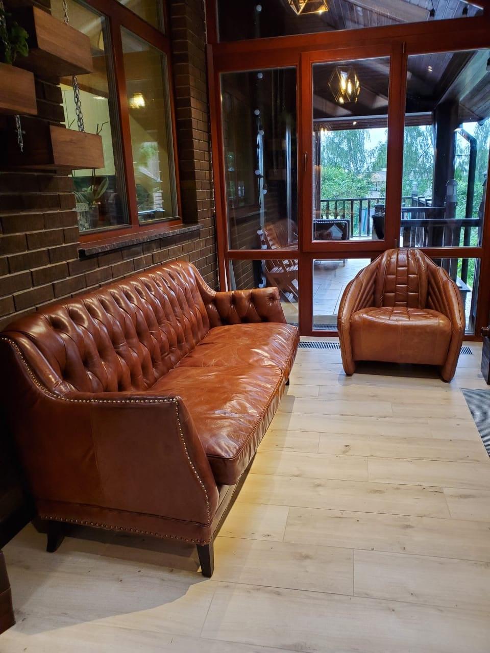 Изготовленный из высококачественных материалов, диван Royal обладает прочным каркасом из лиственницы и массивными деревянными ножками, которые обеспечивают ему надежность и устойчивость. Его обивка выполнена из премиальной коровьей кожи top grain, которая приятно на ощупь и создаёт атмосферу роскоши в вашем интерьере. Изящные латунные гвоздики вдоль сидений добавляют особый шик, подчеркивая стильный облик дивана.
