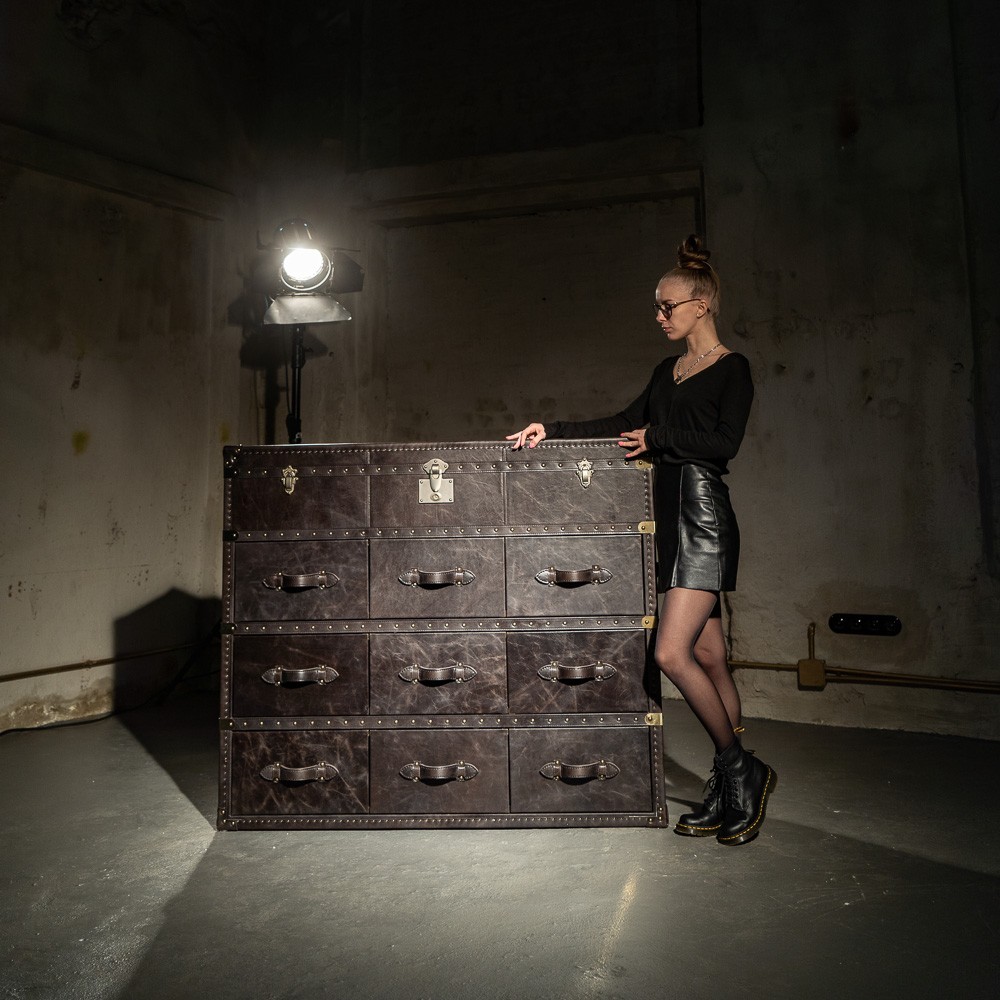 Созданная в духе современного лофтового стиля, тумба станет великолепным акцентом в любом интерьере, будь то уютная квартира или стильный офис. Её элегантные линии и уникальный дизайн моментально привлекают внимание, а обивка из натуральной кожи придаёт особый шик и уют.