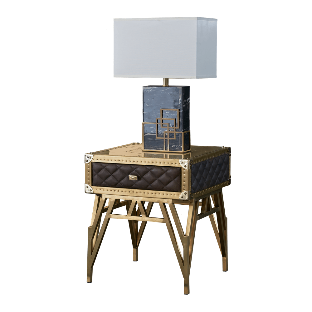 Прикроватная тумба Gothic Brass Golden Steel соединяет в себе полярные материалы. У нее стальное основание с узнаваемыми геометрическими формами.