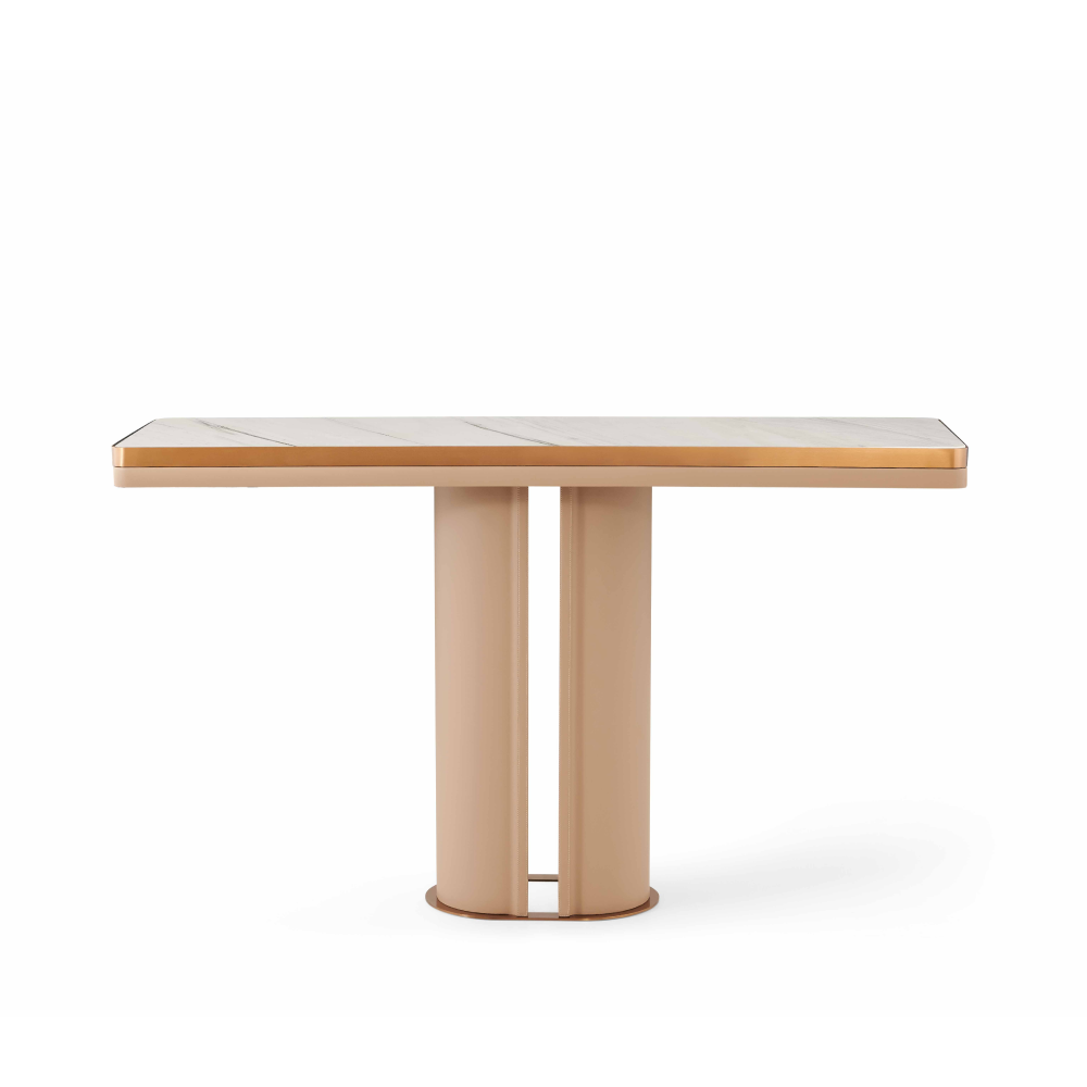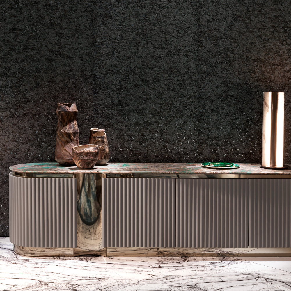 Изюминкой тумбы является обрамление из нержавеющей стали с матовым покрытием розового золота, которое добавляет нотки современности и утонченности. Эта комбинация материалов делает тумбу Cortan идеальным решением для тех, кто ценит качество и стиль.