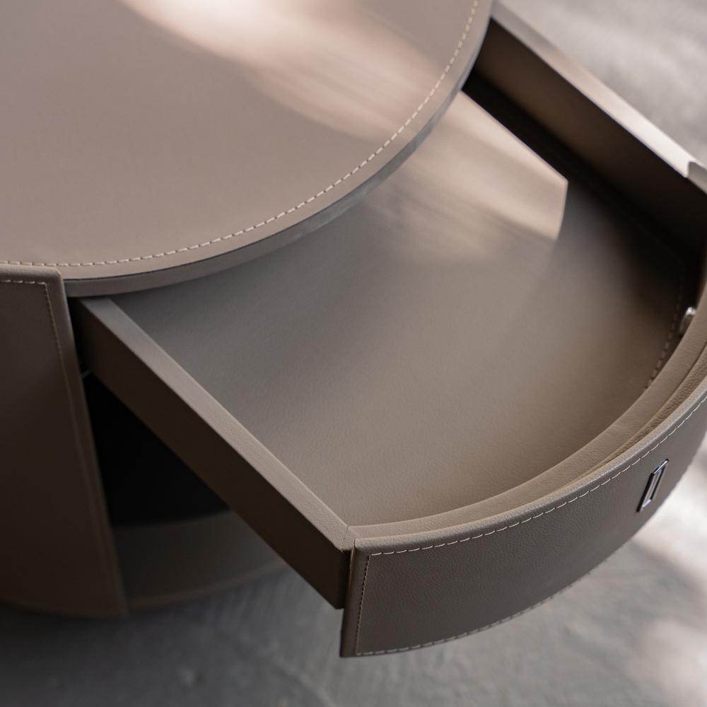 Изготовленная из высококачественного ЛДСП Е1 и дополненная прочным закаленным стеклом, она гарантирует долговечность и надежность использования. Но что действительно выделяет эту тумбу, так это роскошная кожаная отделка, которая придает изделию изысканный вид и ощущение premium-класса.