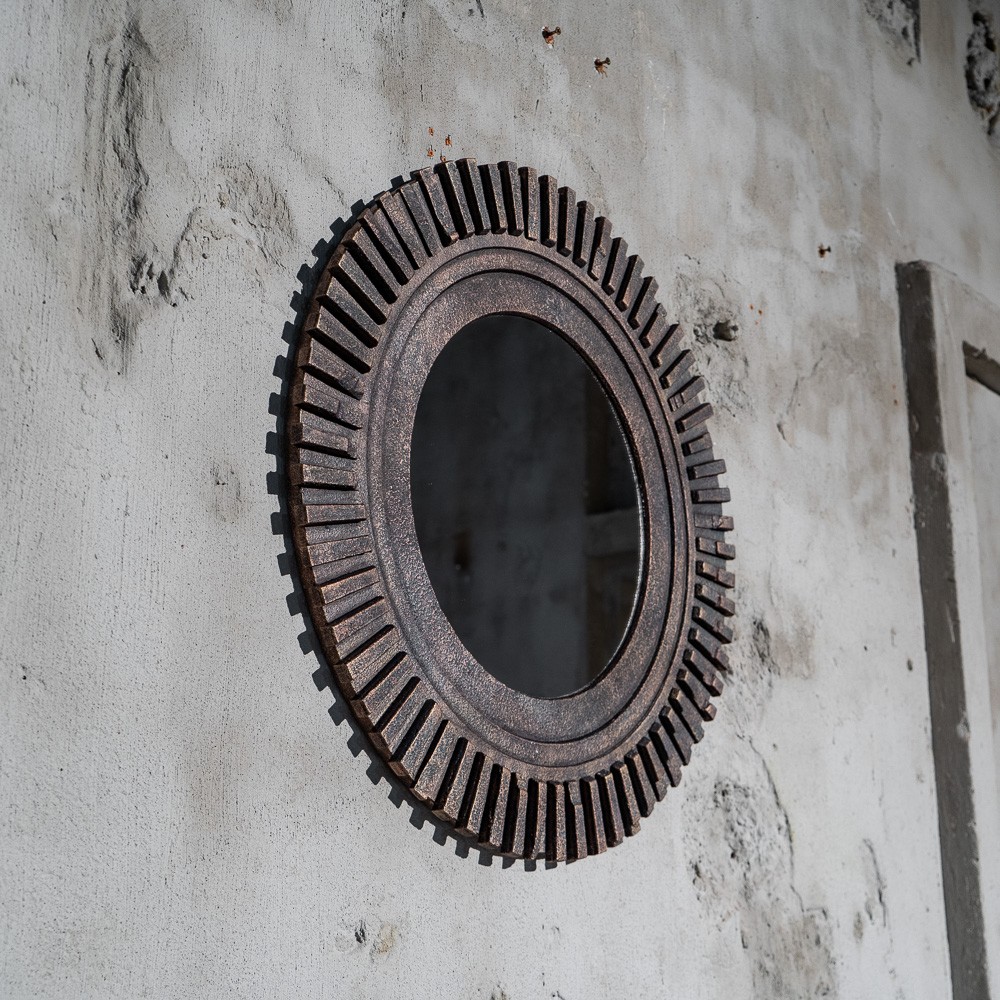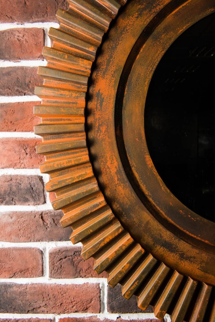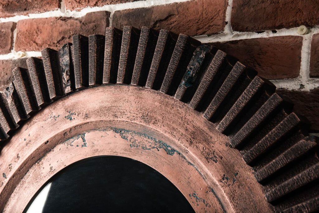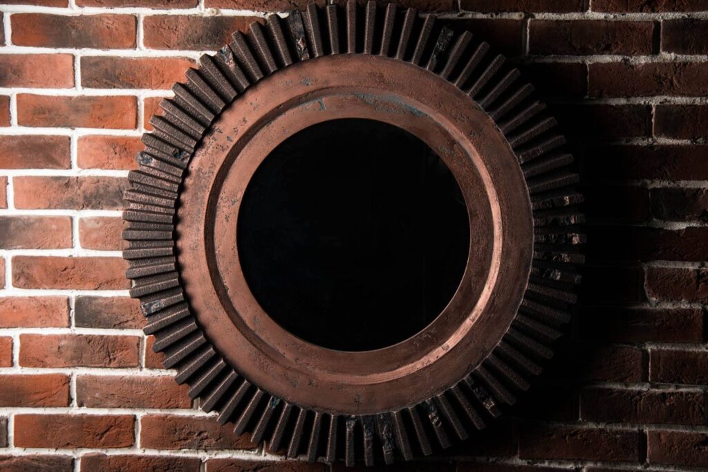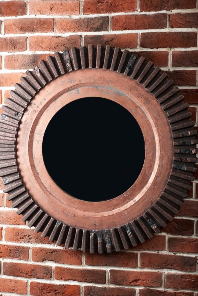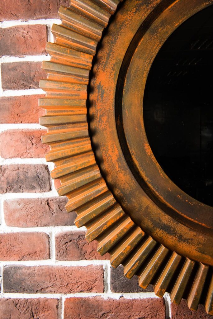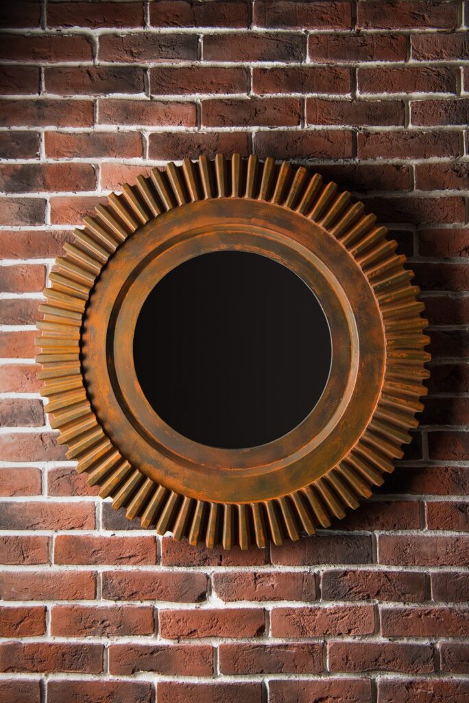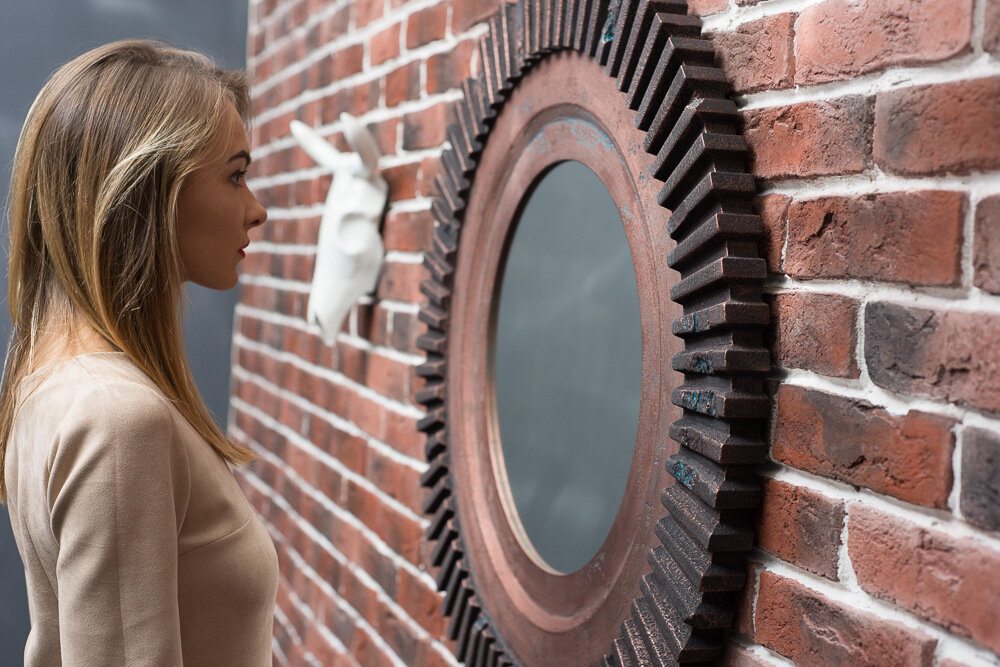 Настенное зеркало в искусственно состаренной раме впишется в индустриальный стиль интерьера. Следы ржавчины, сколов и потертостей создают эффект стариной вещи, пережившей не один десяток лет. Аксессуары, сделанные «под старину», помогут передать атмосферу лофта, в котором было принято обживать непредназначенные для жилья фабричные или заводские цеха. Большое зеркало визуально расширит помещение, добавив еще больше открытого пространства свободолюбивому лофту.